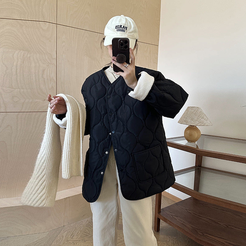 - Kuscheliger Kragen: Der weiche Kragen schützt vor Kälte und verleiht der Jacke einen zusätzlichen Hauch von Eleganz.