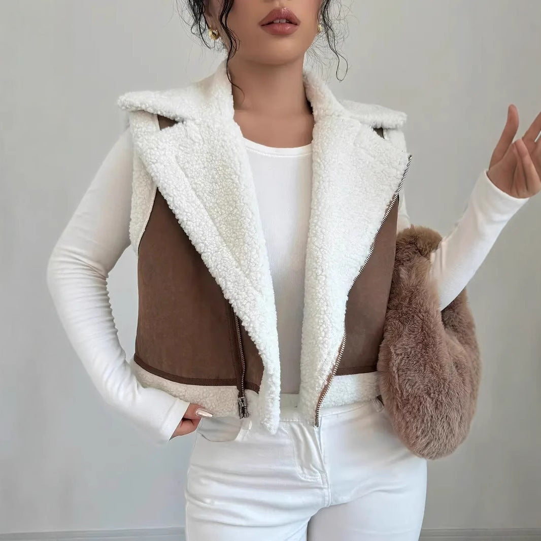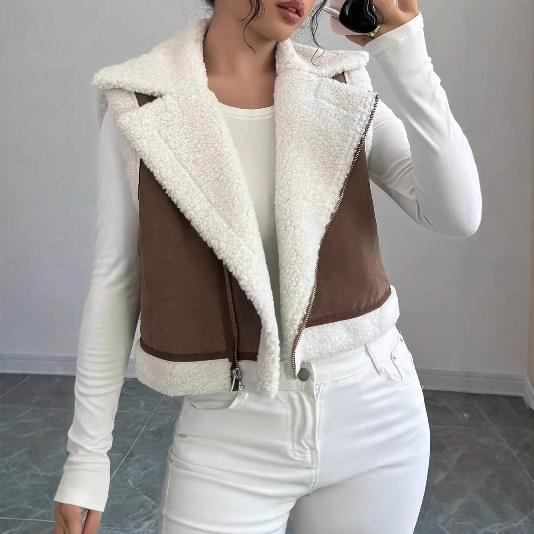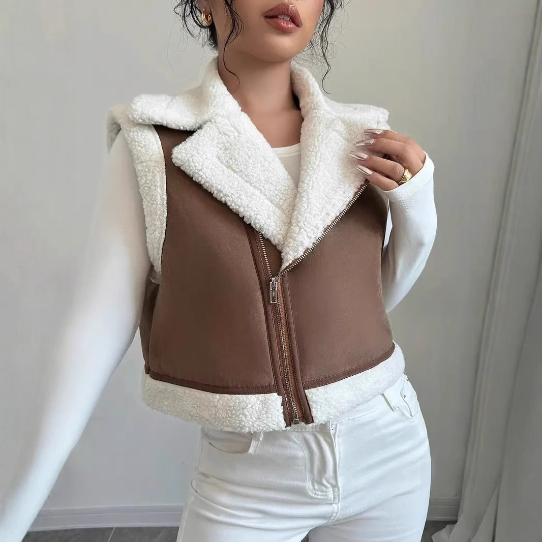 Damen Kuschelige Steppweste mit Reißverschluss und Fleece-Kragen Heidi-Mode