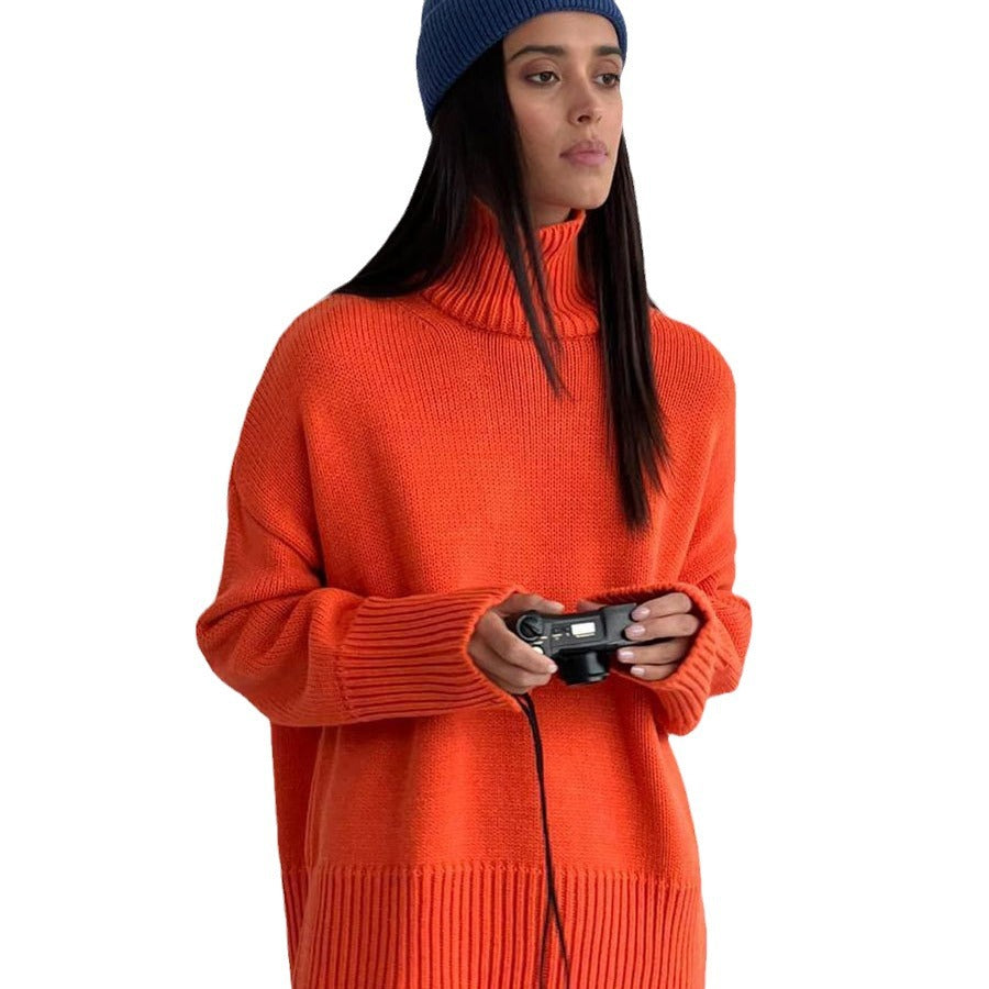 Damen Kuscheliger Rollkragenpullover aus hochwertiger Baumwollmischung mit lockerer Passform Heidi-Mode