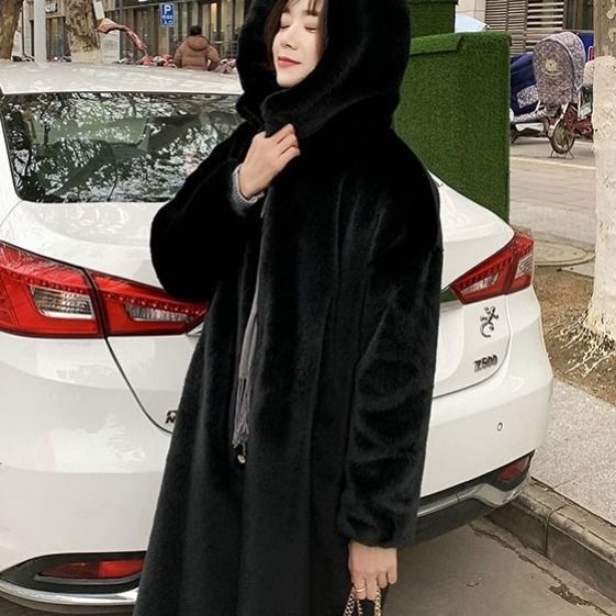 Modischer Langer Teddy Mantel Mit Kapuze
