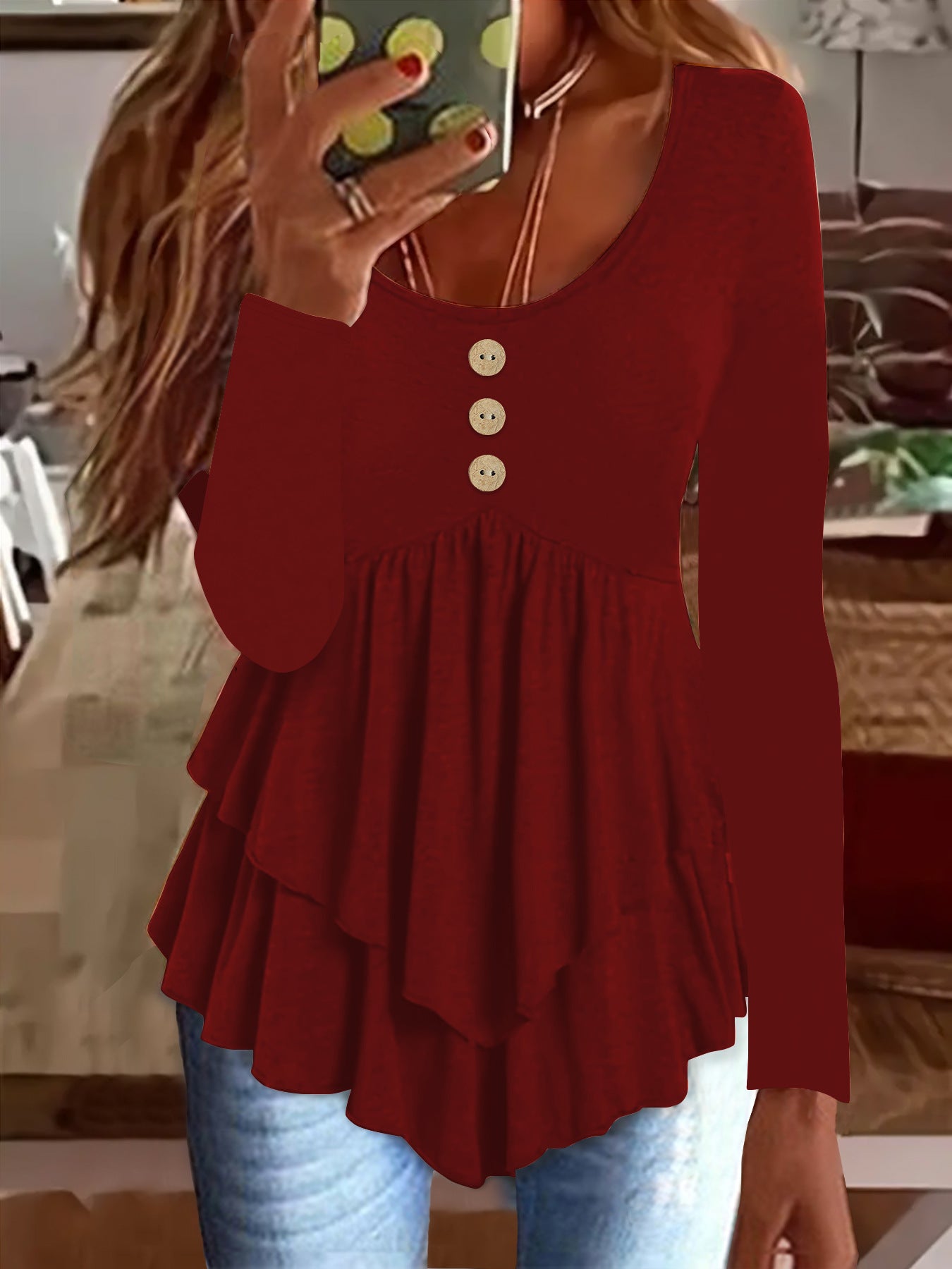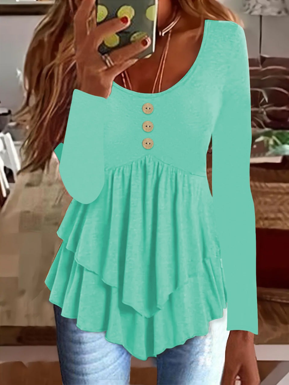 • Besonderes Design: Das mehrlagige Design verleiht dem Shirt eine modische Note, während die dekorativen Knöpfe für einen schönen Akzent sorgen.