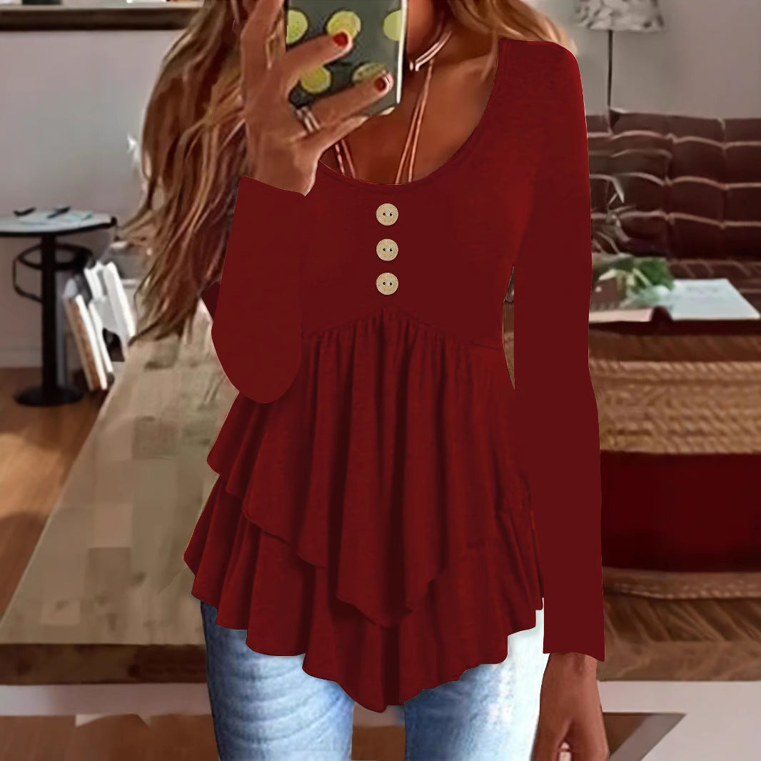 Damen Langarm Blusenshirt mit mehrlagigem Design und dekorativen Knopfdetails Heidi-Mode