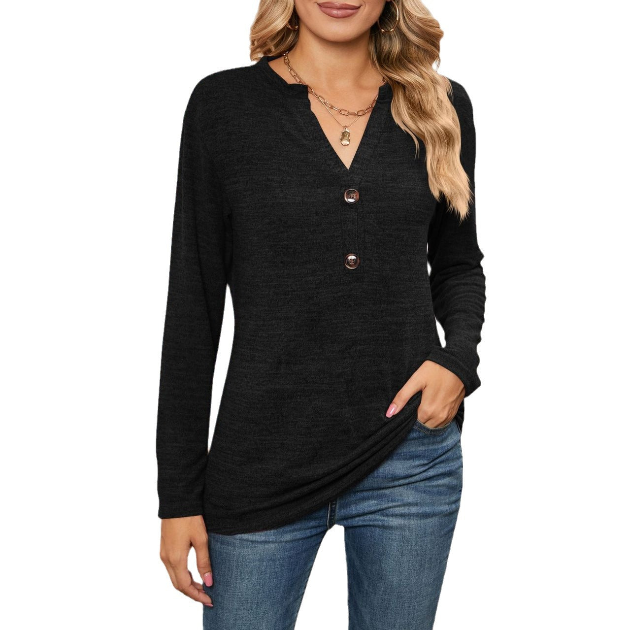 Damen Langarm-Hemd mit Knopfleiste und elegantem V-Ausschnitt Heidi-Mode