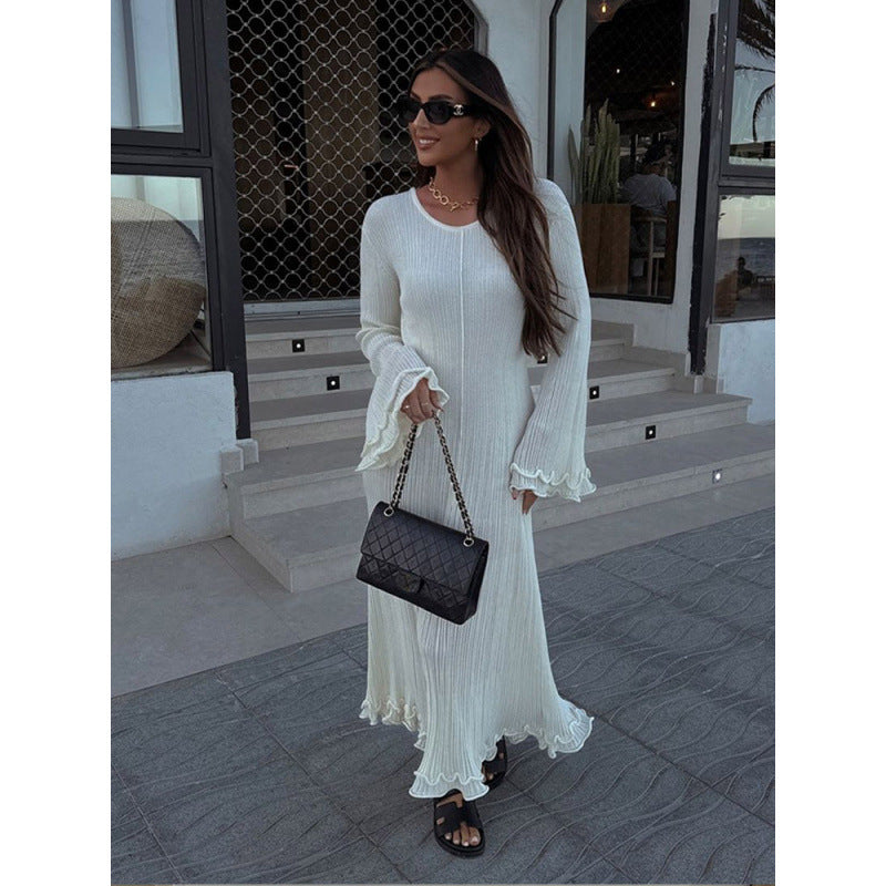 • Elegantes Design: Das Maxikleid ist mit feinen Rüschendetails an den Ärmeln versehen, die einen femininen Touch verleihen.