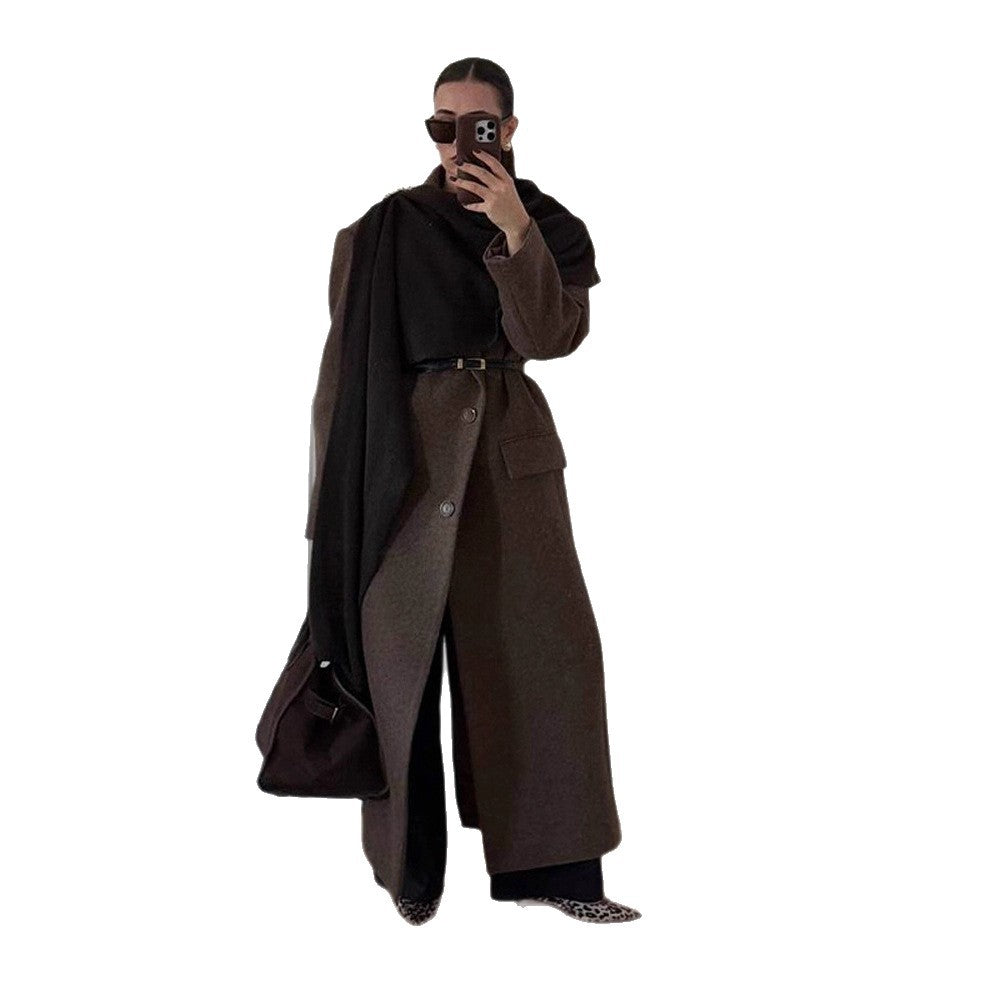 Damen Lange Wollmantel mit modernen Schnittführungen Heidi-Mode