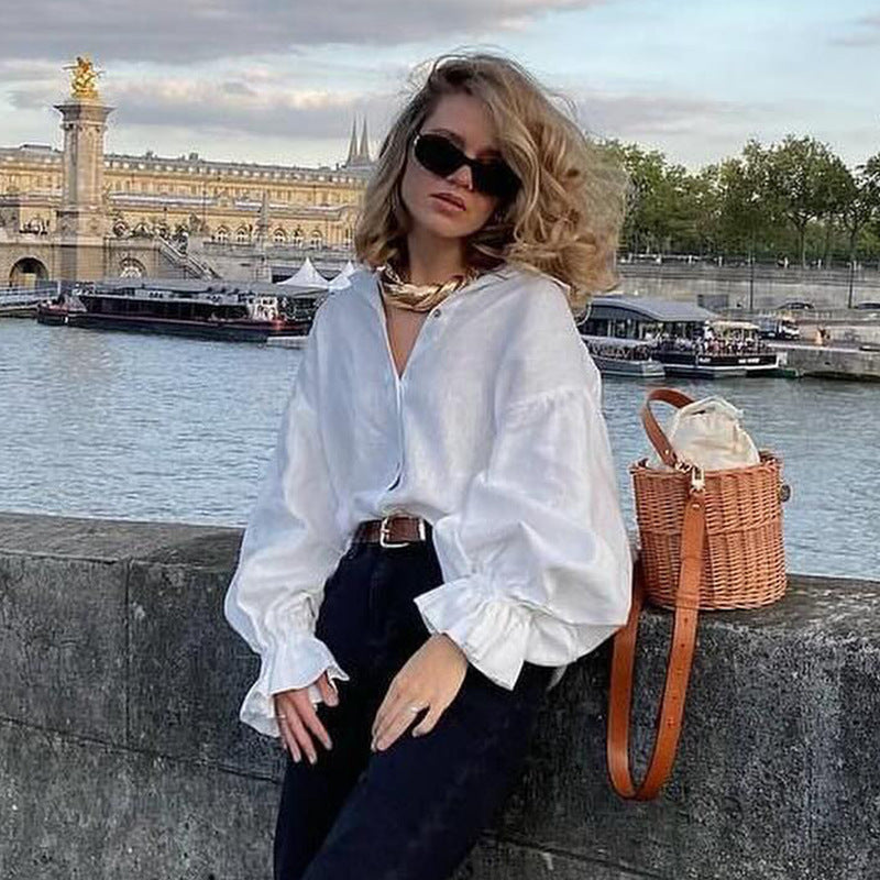 Damen lässige Leinenbluse mit ballonärmel Heidi-Mode