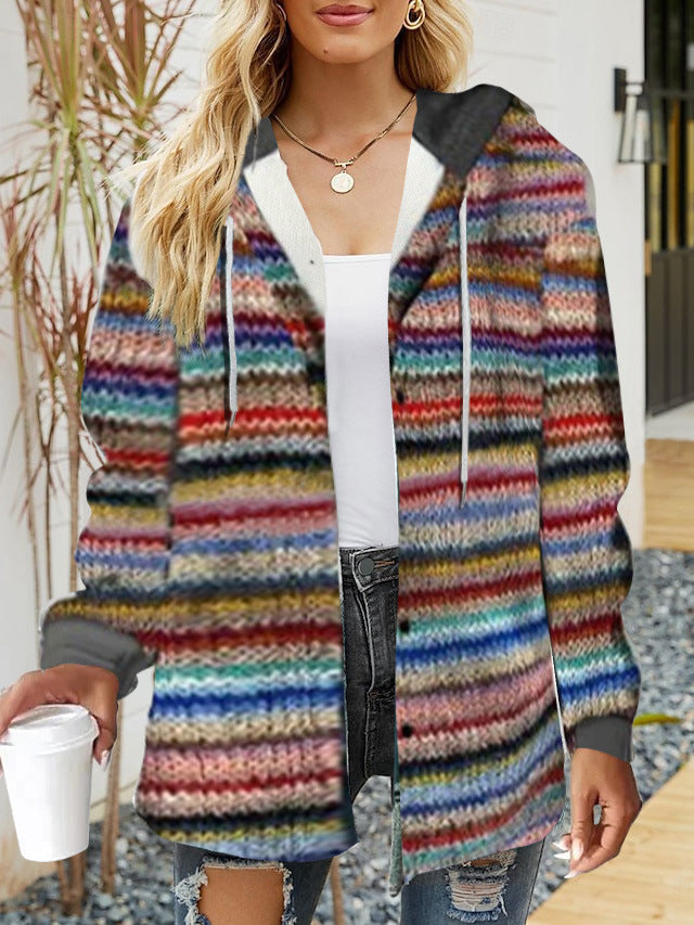 Damen lässige Overshirt-Jacke mit Kapuze und praktischem Kordelzug Heidi-Mode