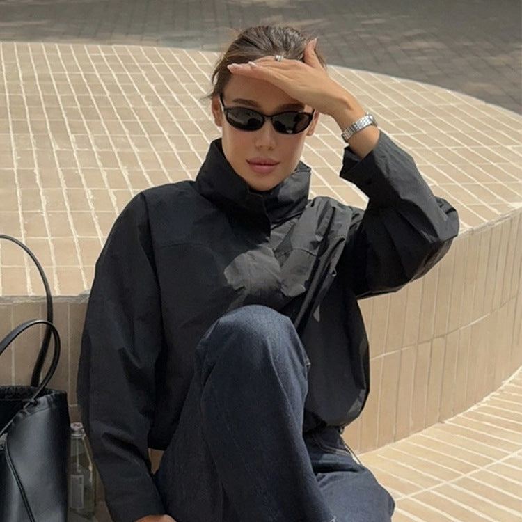 Damen lässige oversized Jacke mit hohem Kragen und verstellbarem Verschluss Heidi-Mode