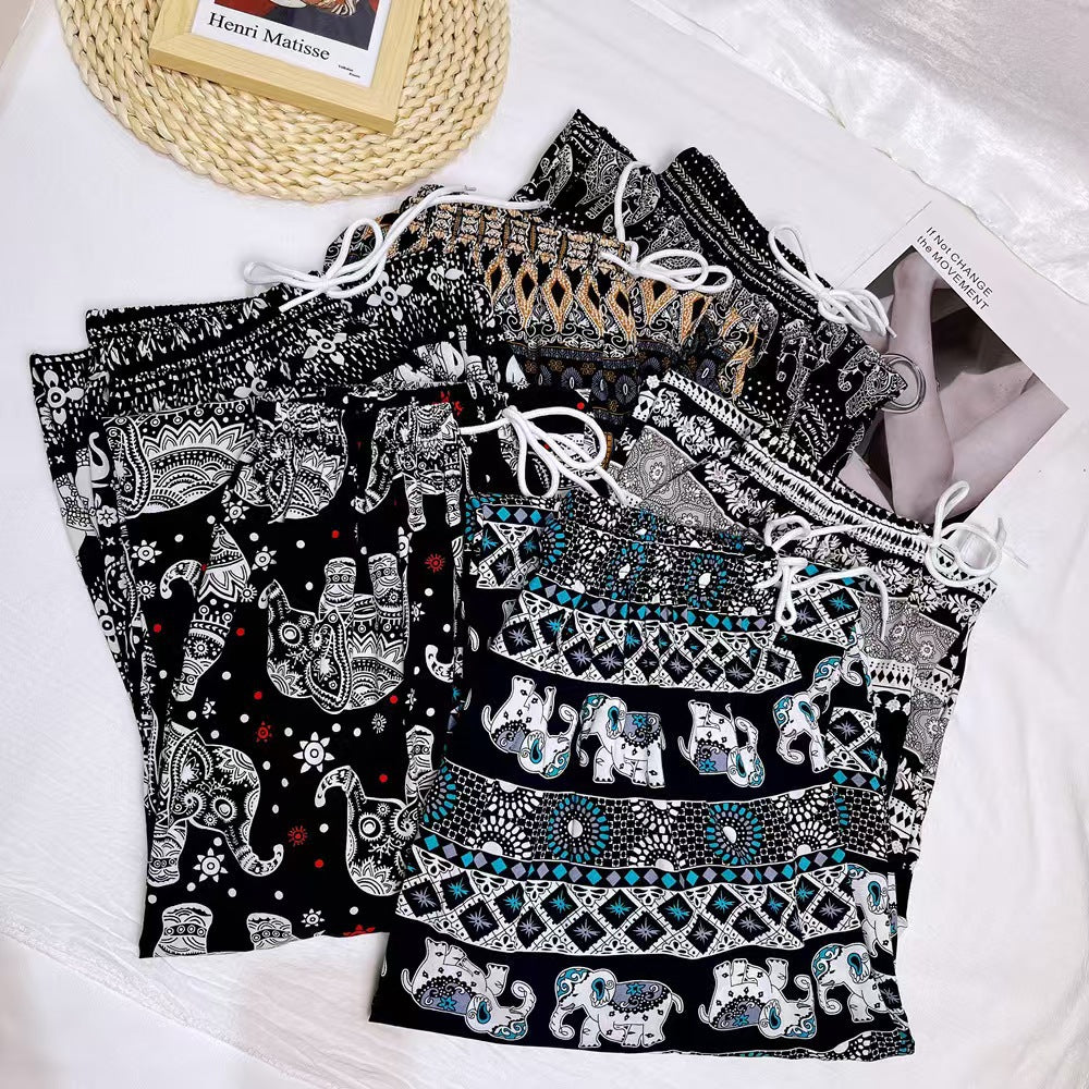 Damen Lässige Palazzo-Hose mit Elefantenmuster und elastischem Bund Heidi-Mode