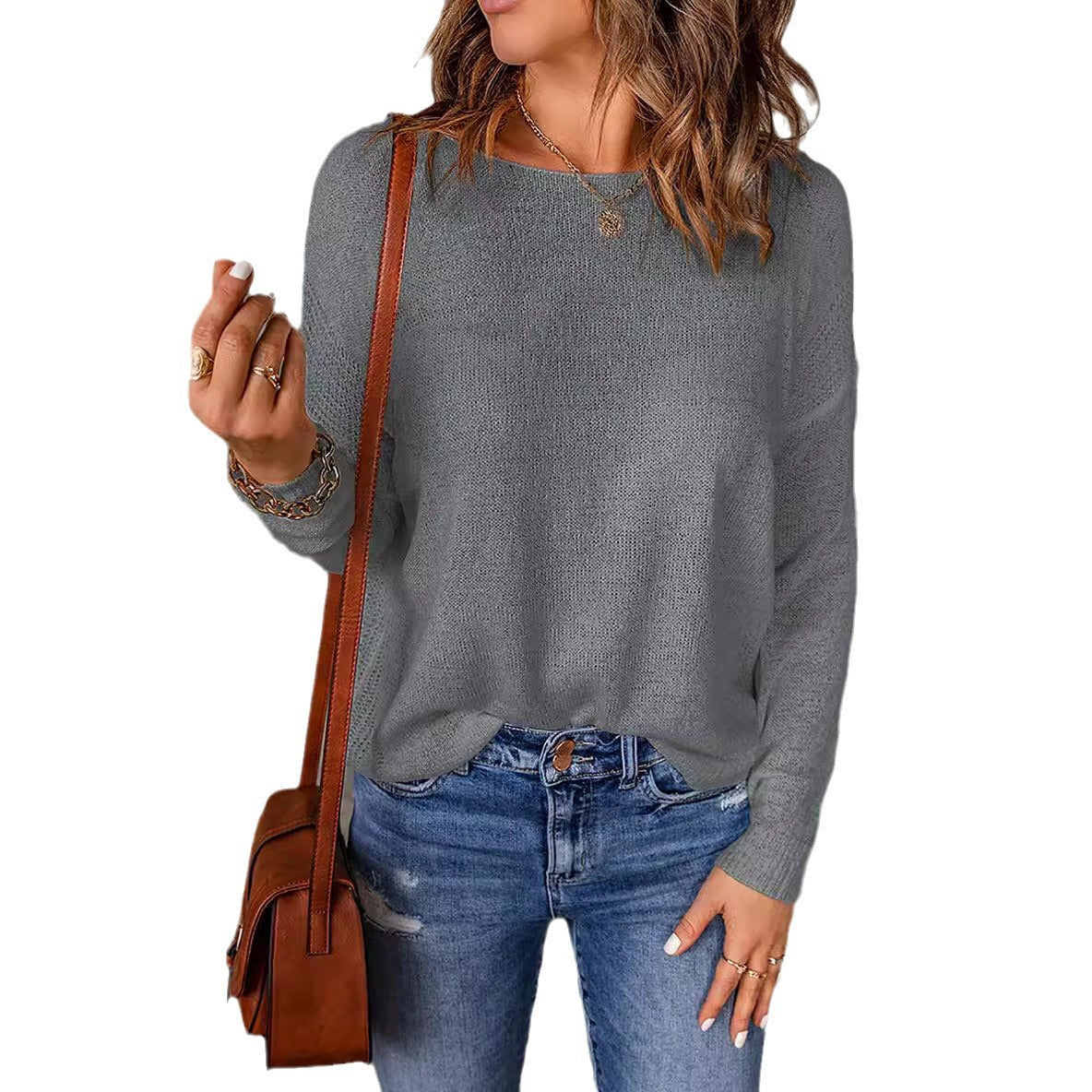 Damen lässiger Feinstrickpullover mit weitem Schnitt und langen Ärmeln Heidi-Mode
