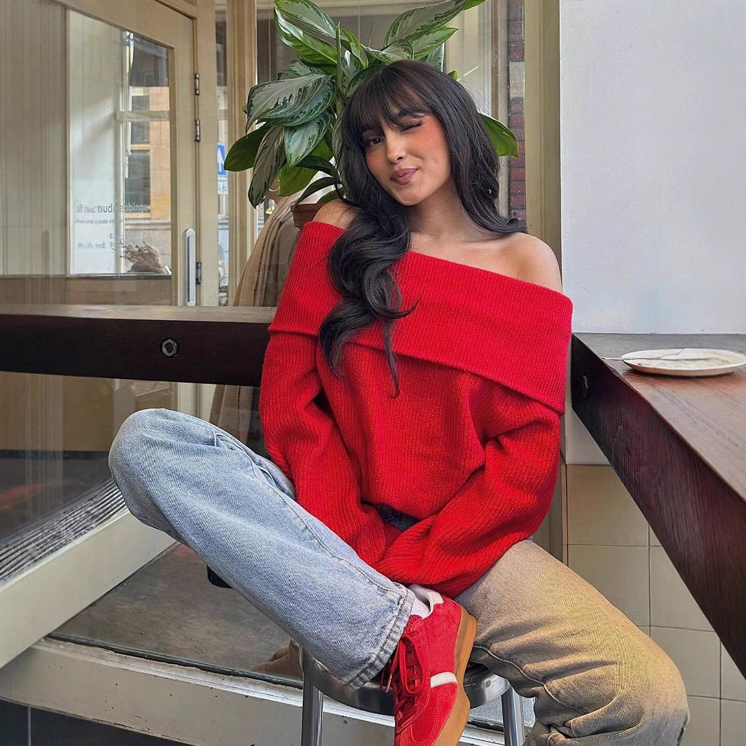 Damen lässiger Pullover mit weitem Kragen und strukturierter Maschenart Heidi-Mode
