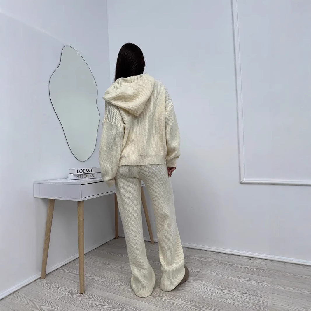 Damen lässiger Strick-Loungewear-Anzug mit weitem Schnitt und Kapuze Heidi-Mode