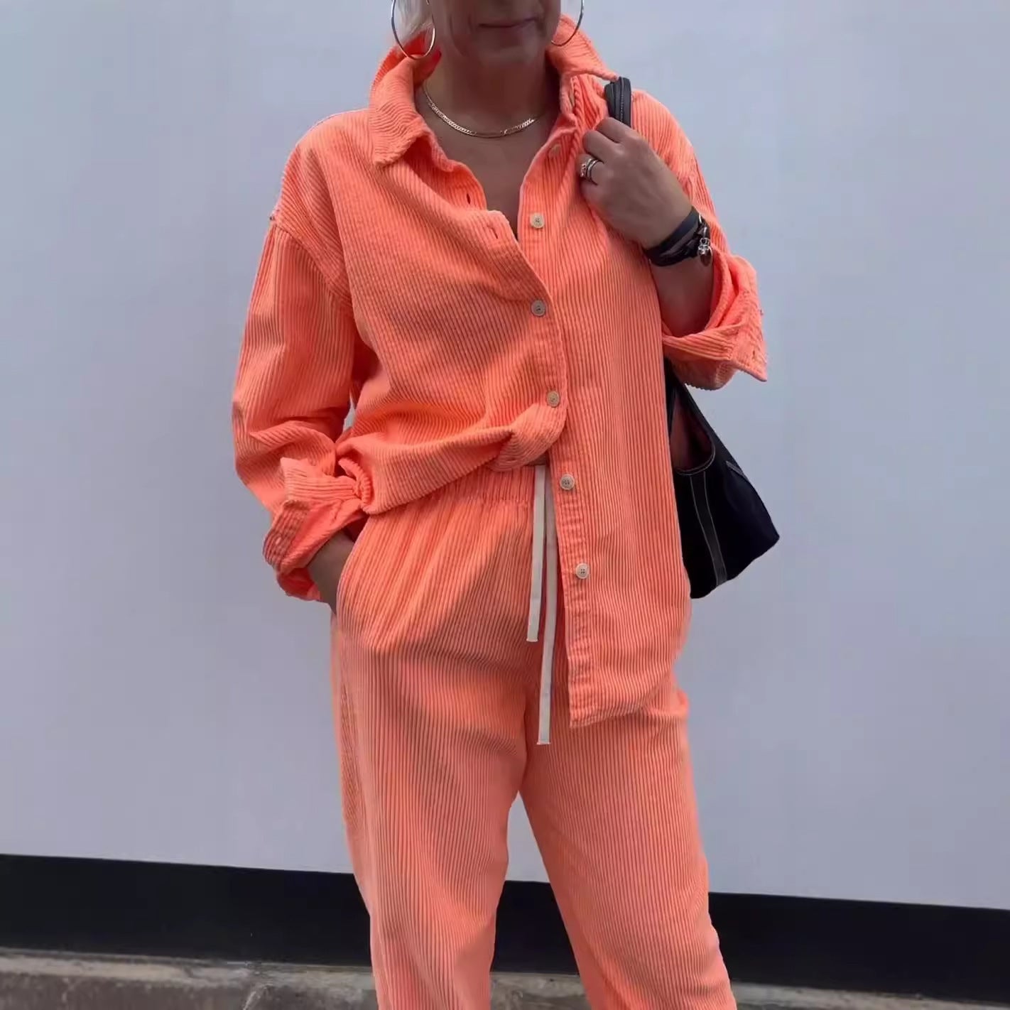 Dieses Cord-Set kombiniert Funktionalität mit Stil und wird schnell zu Ihrem neuen Lieblingsteil in der Garderobe. Genießen Sie Mode, die sowohl schick als auch bequem ist!