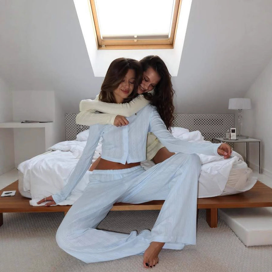 Bringen Sie frischen Wind in Ihre Garderobe mit diesem stilvollen Lounge-Set und genießen Sie den perfekten Mix aus Komfort und Eleganz!