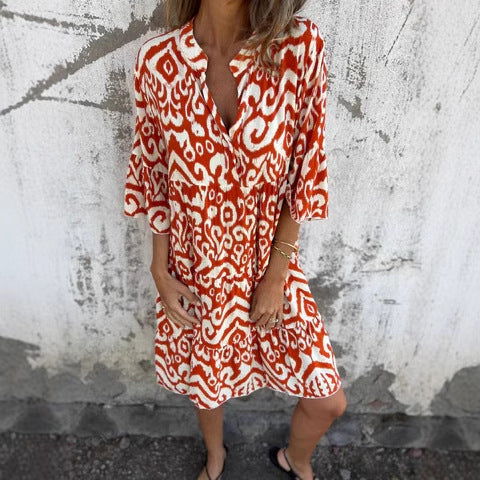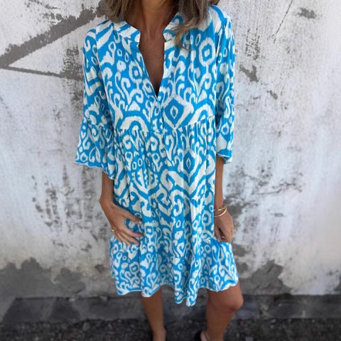 Damen lässiges Strandkleid mit lockerer Passform und schickem Druck Heidi-Mode