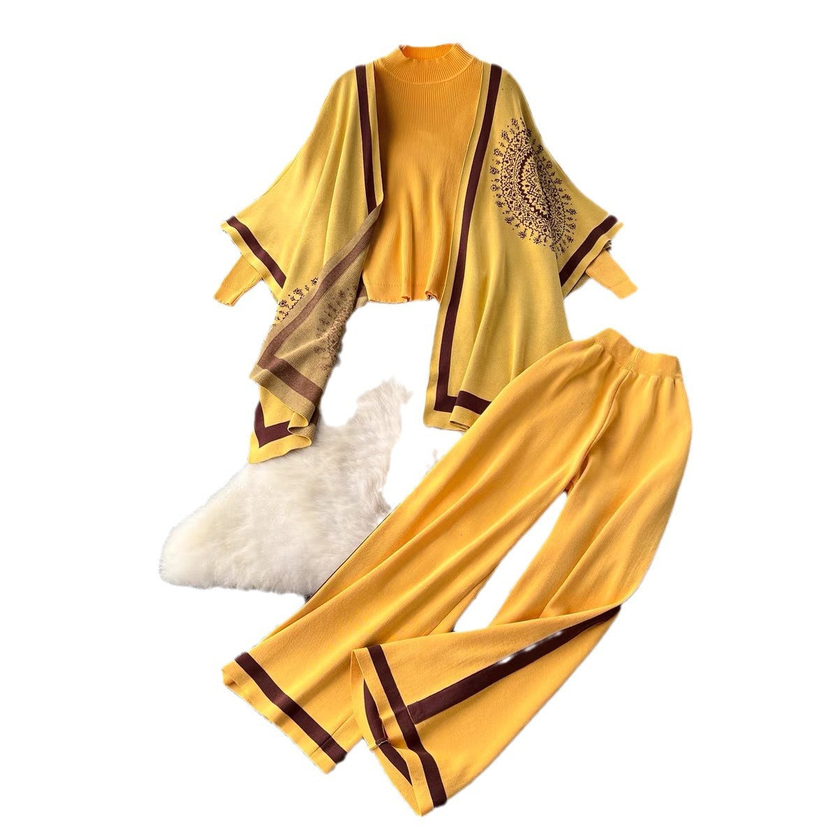 Damen lässiges Strickensemble mit langen Ärmeln und weitem Bein Heidi-Mode