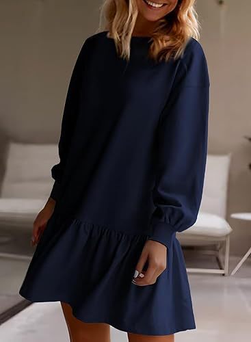 Damen lässiges Sweatkleid mit voluminösen Ärmeln und Rüschensaum Heidi-Mode