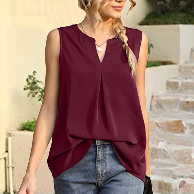 Damen luftiges ärmelloses Oberteil mit modischem V-Ausschnitt Heidi-Mode