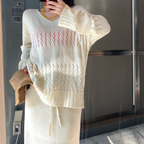 Damen luftiges Strickoberteil mit V-Ausschnitt und Batikmuster Heidi-Mode