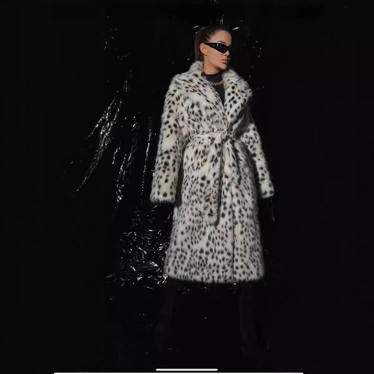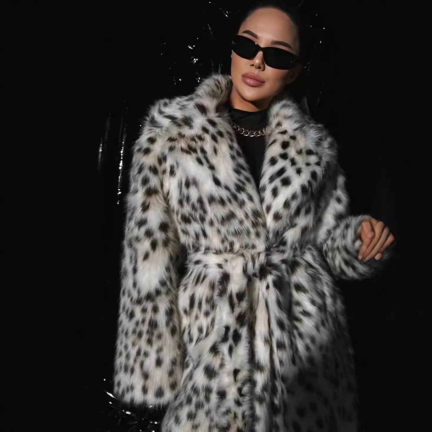 Damen Luxuriöser Leopardenmuster Kunstpelzmantel Heidi-Mode