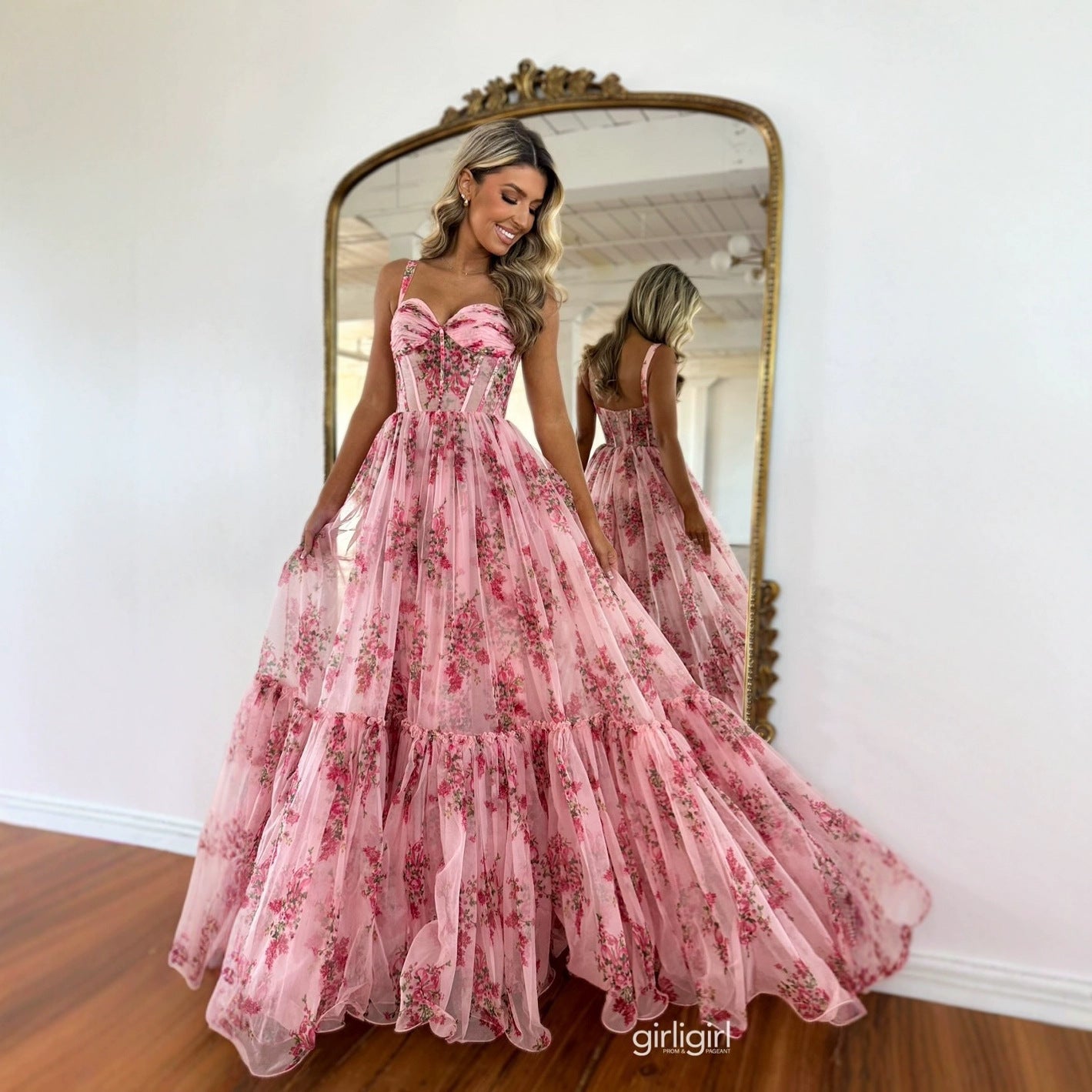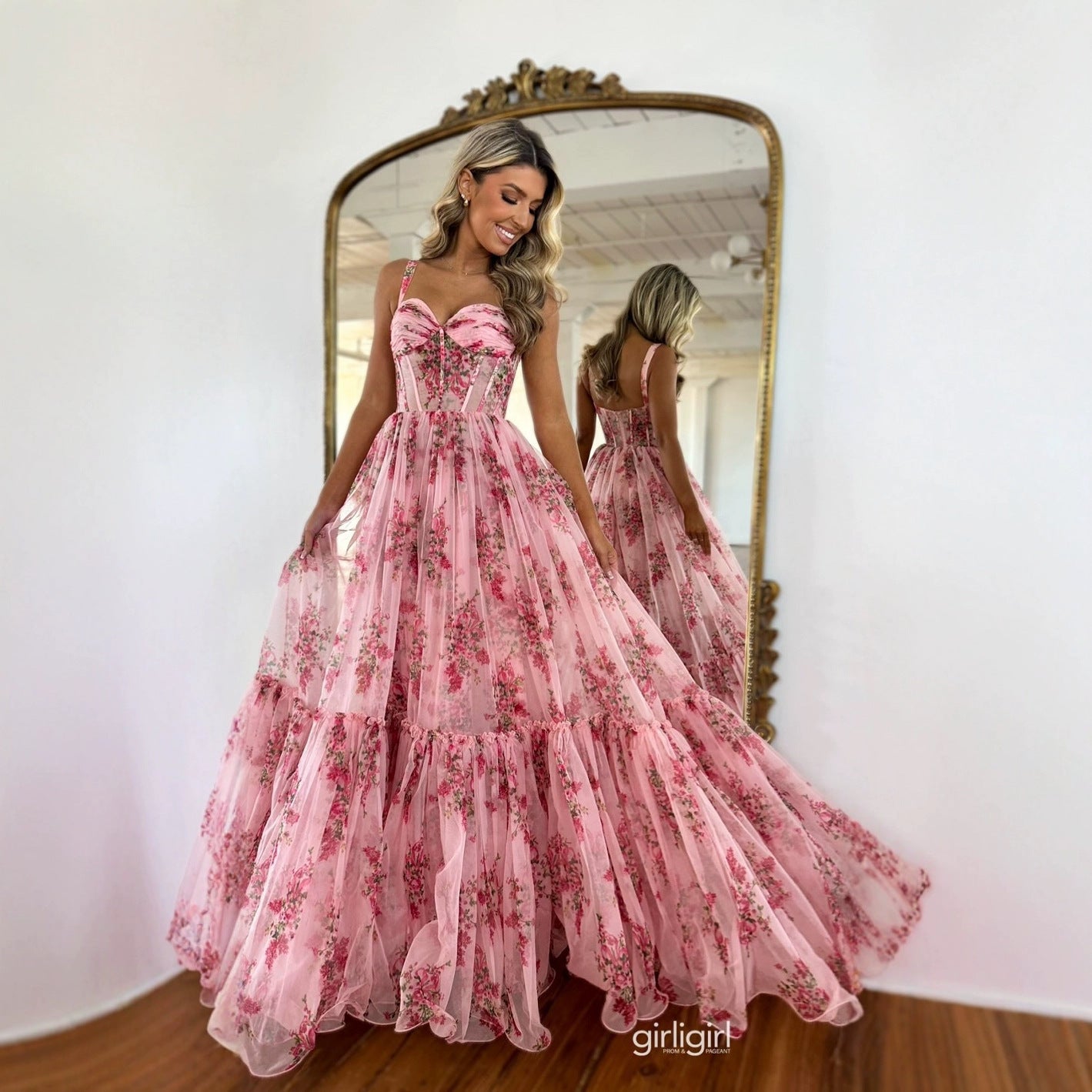 Damen Maxikleid mit floralem Tüll und voluminösem Rock Heidi-Mode