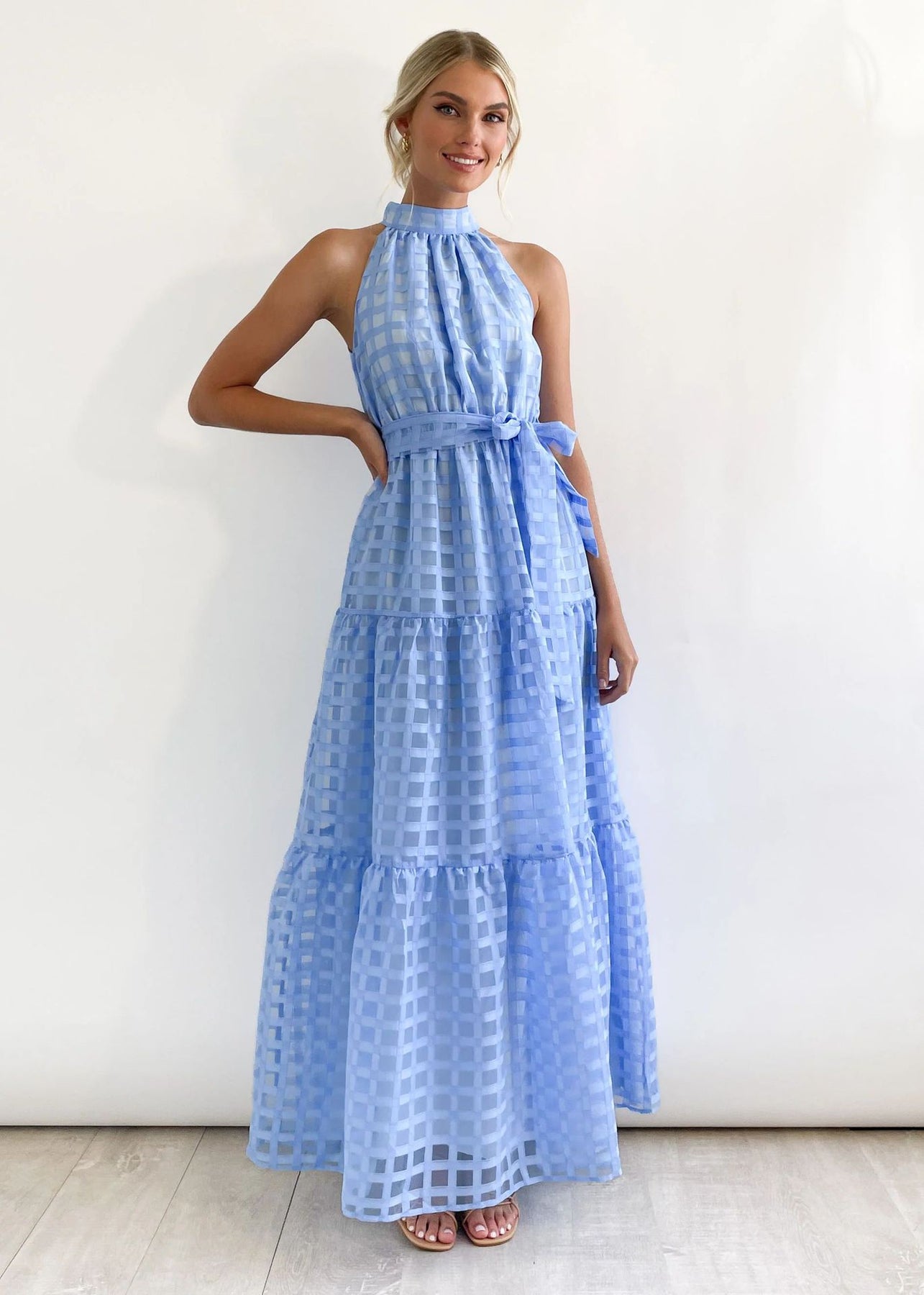 Damen Maxikleid mit raffiniertem Hochkragen und gestuftem Design Heidi-Mode