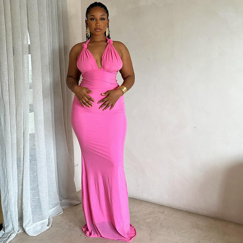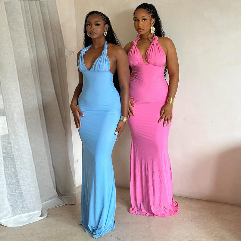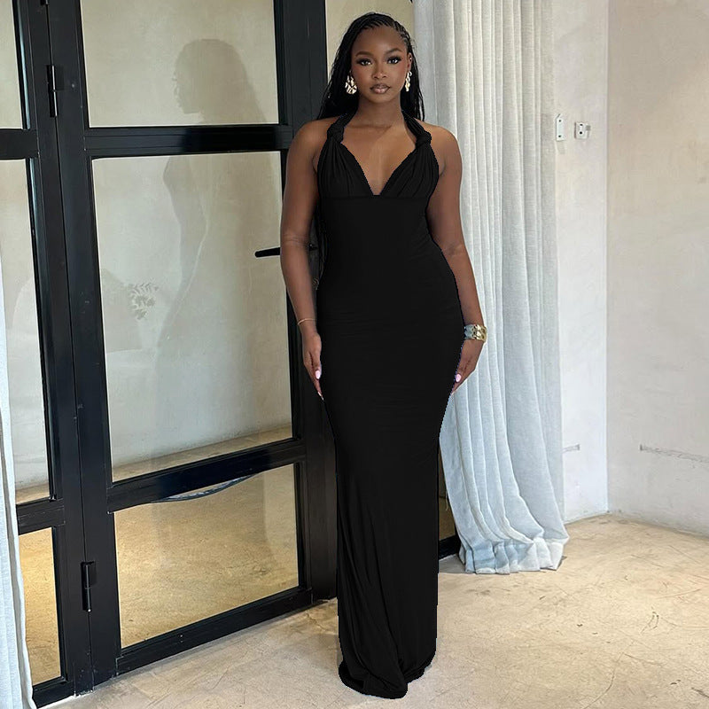 • V-Ausschnitt: Der tiefe V-Ausschnitt verleiht dem Kleid eine verführerische Note.