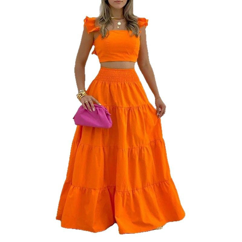 Damen Maxikleid mit voluminösem Rock und Rüschendetails Heidi-Mode