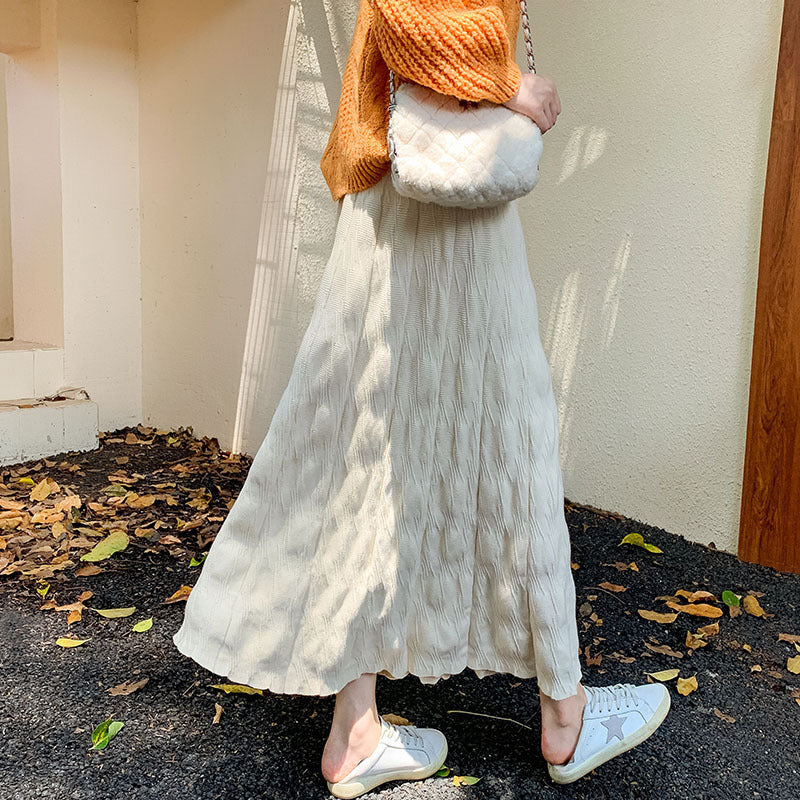 Damen Maxirock mit raffiniertem Rippdesign und elastischem Bund Heidi-Mode
