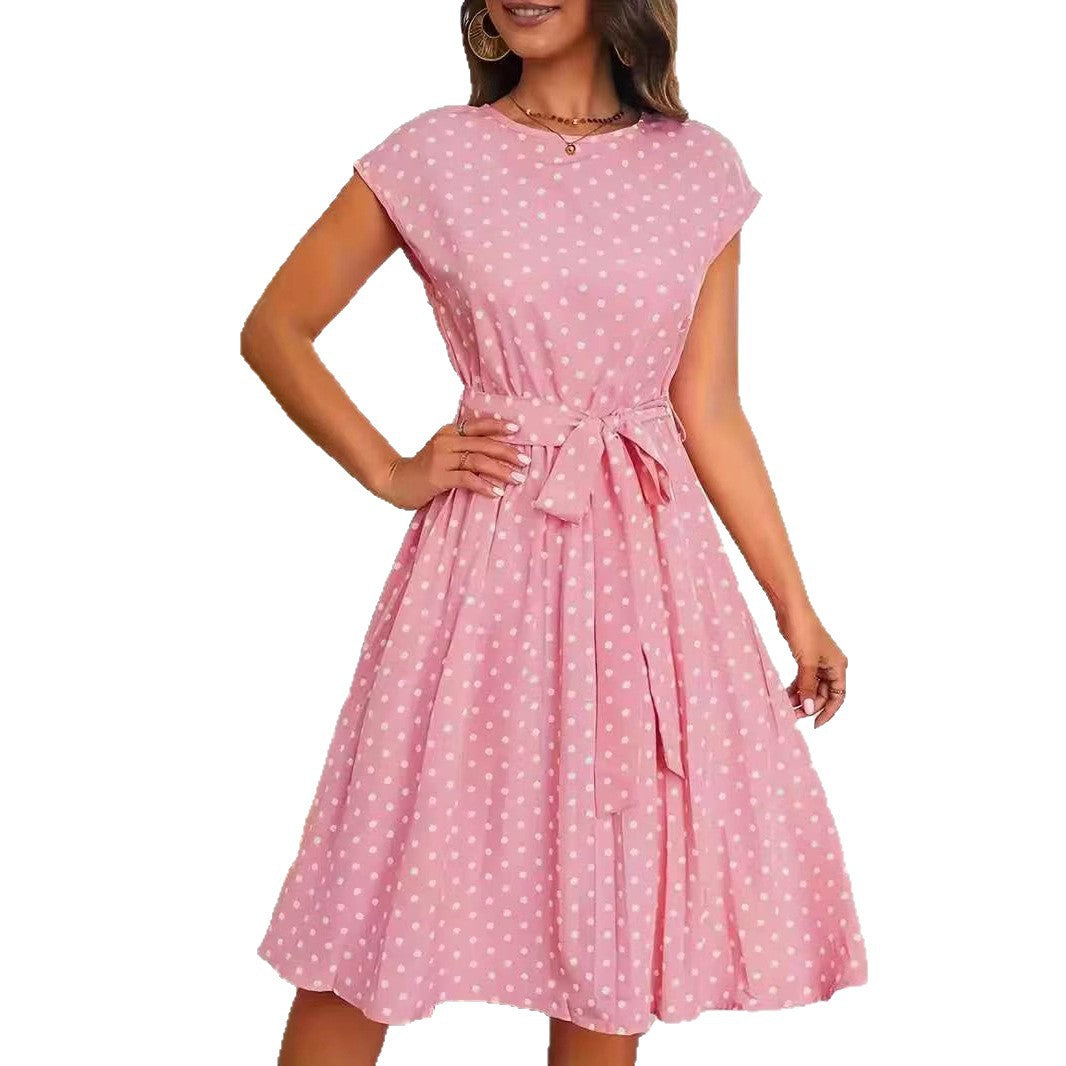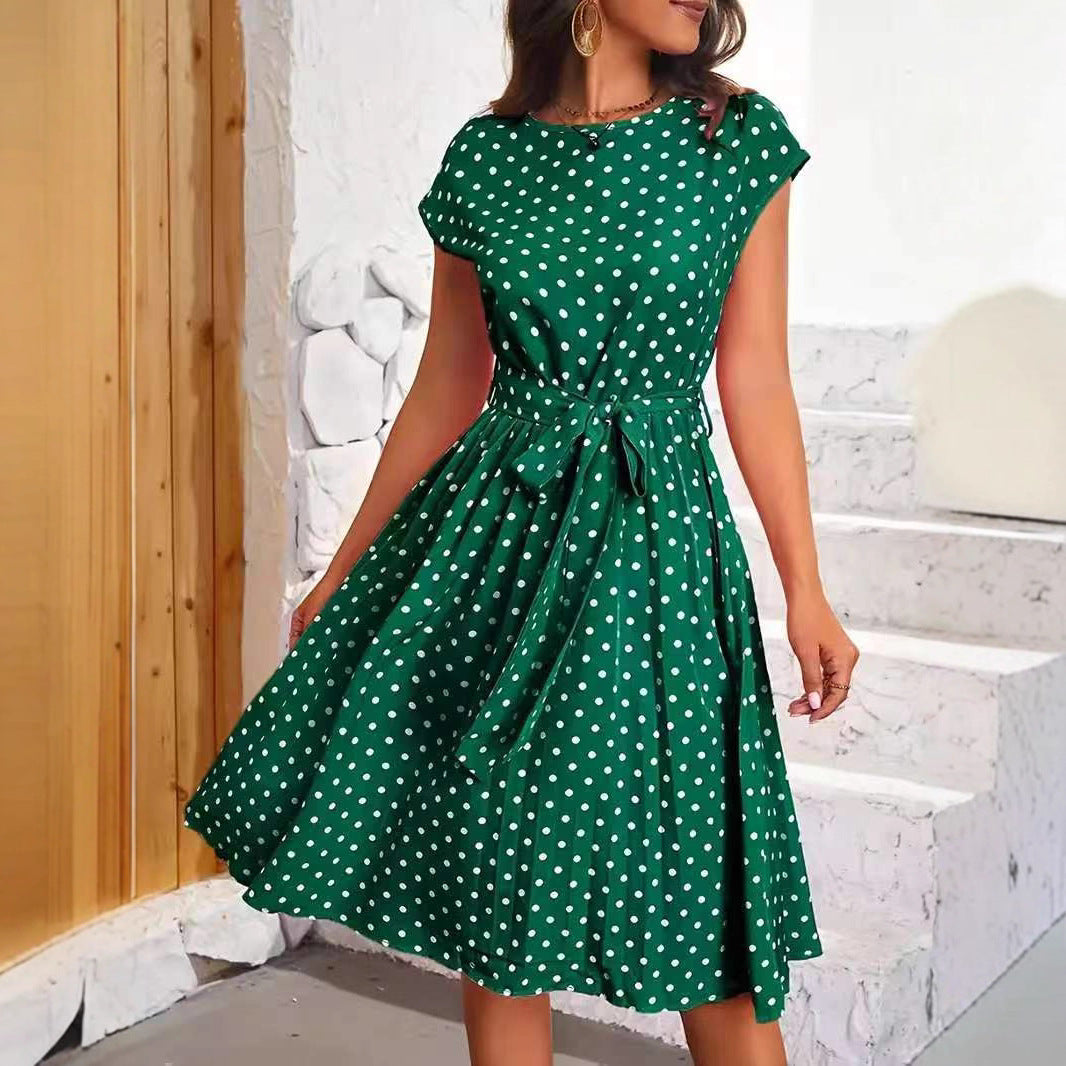Damen Midikleid mit taillierendem Bindegürtel und verspieltem Polka-Dots Design Heidi-Mode