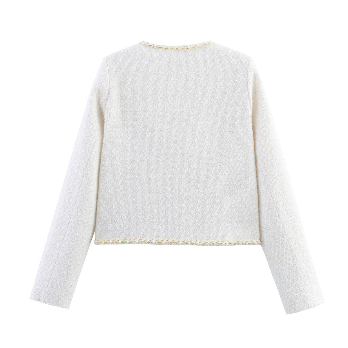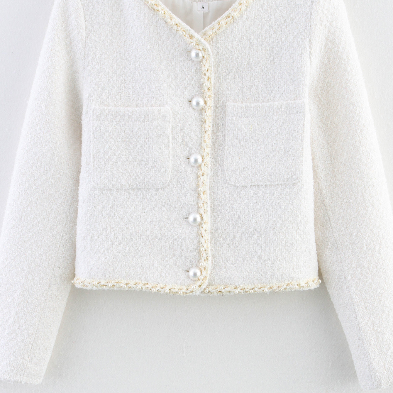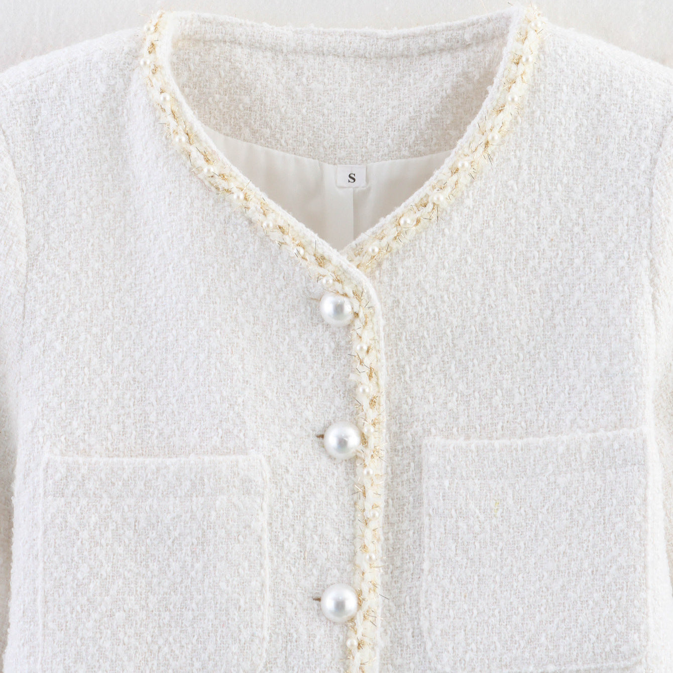 Damen modische Bouclé-Jacke mit eleganten Taschen und perlverzierten Knöpfen Heidi-Mode
