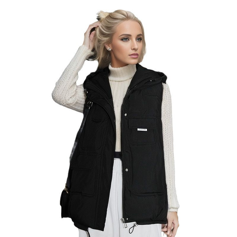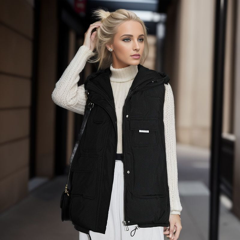 Damen modische gesteppte Weste mit praktischen Taschen und wandelbarem Kragen Heidi-Mode