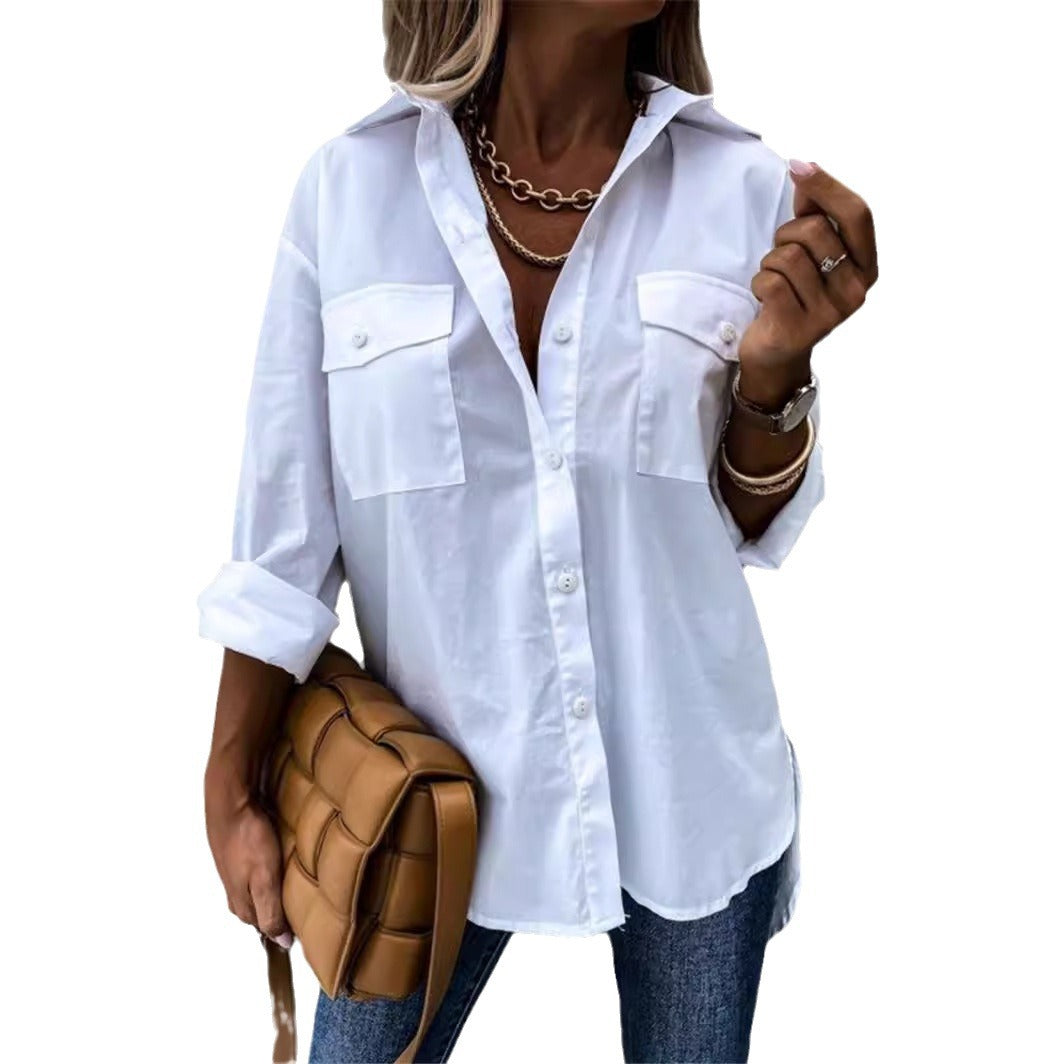 Damen Modische Hemdbluse mit praktischen Brusttaschen und legerem Schnitt Heidi-Mode