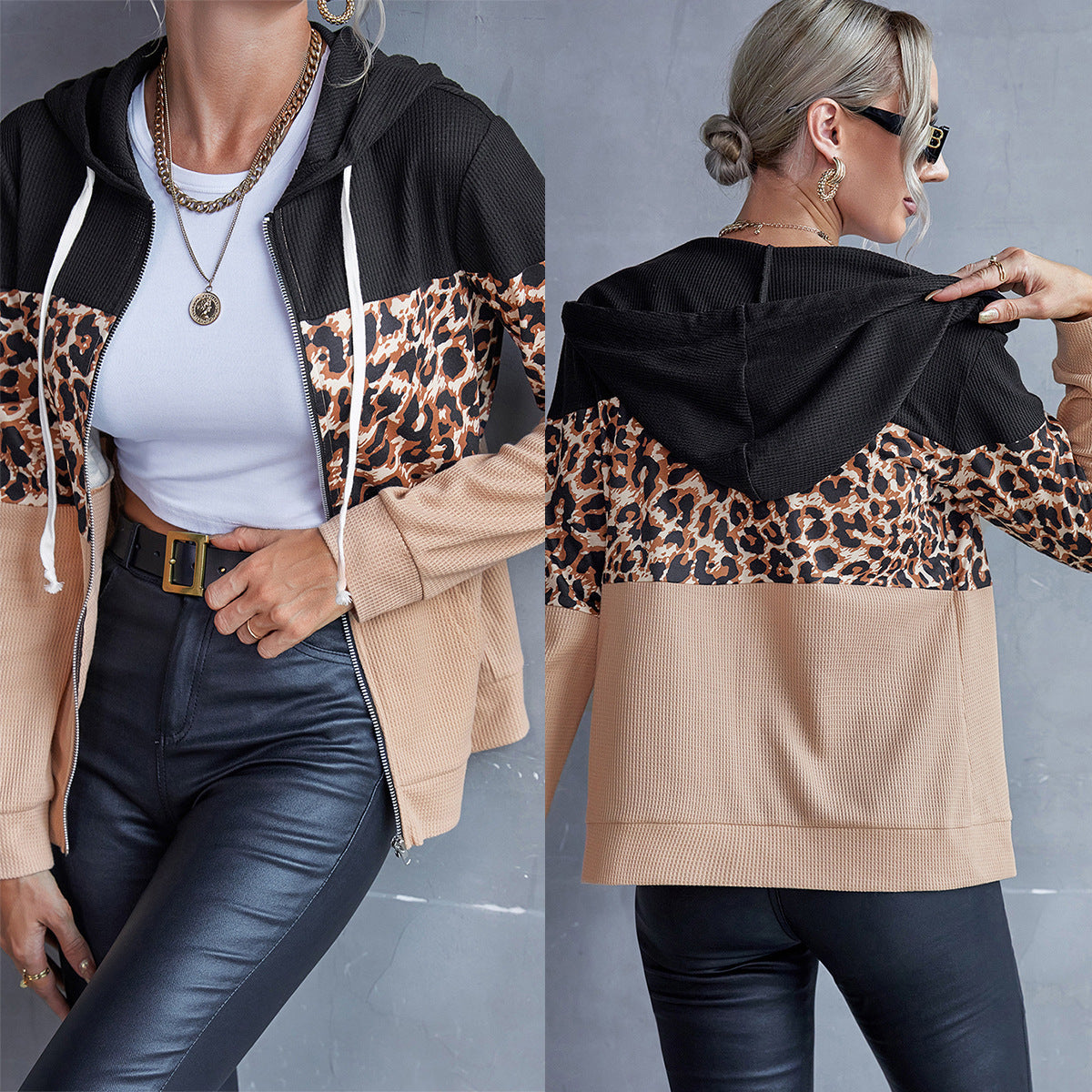 Damen modische Kapuzenjacke mit Tierdruck und kontrastierenden Ärmeln Heidi-Mode