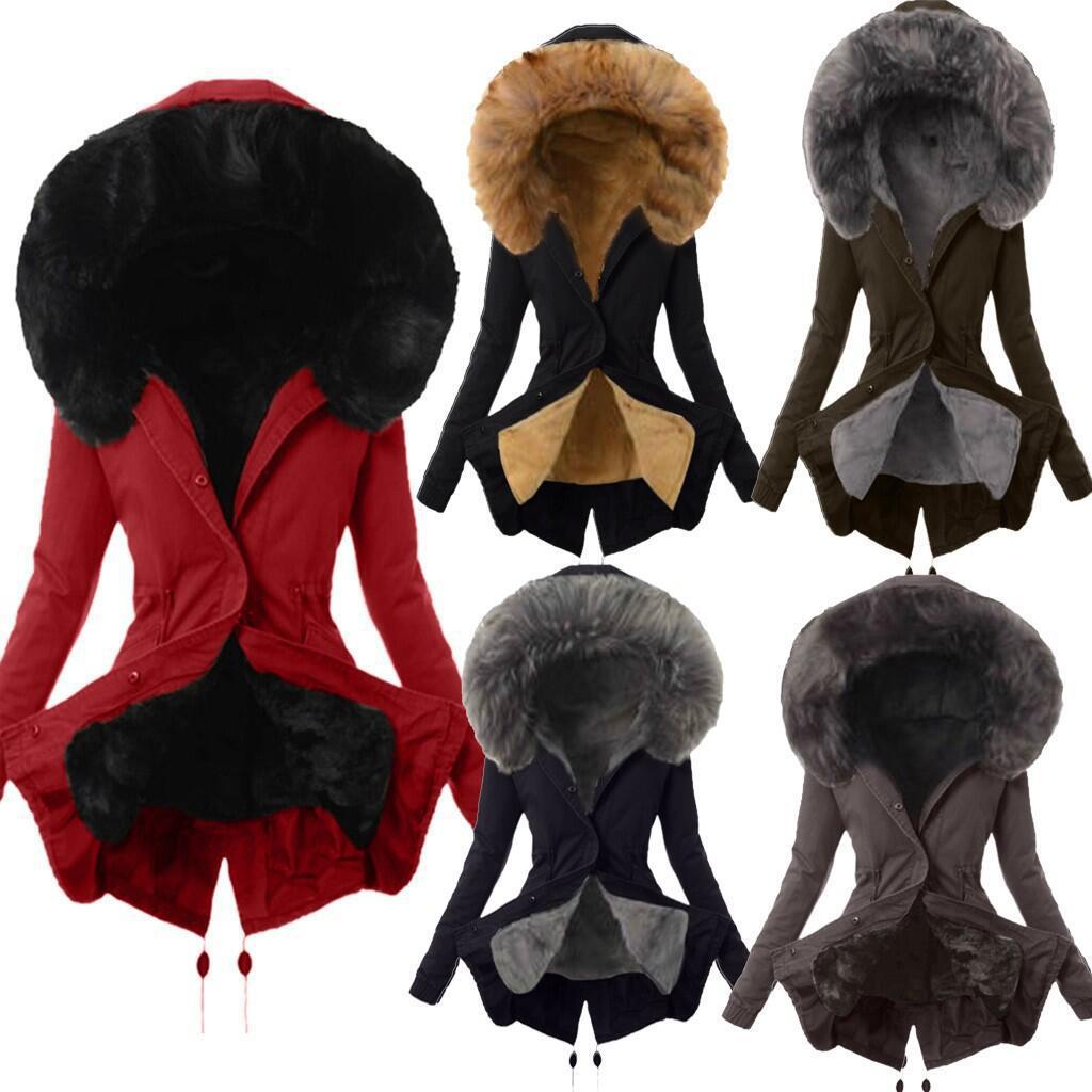 Damen modische Parkajacke mit abnehmbarem Kunstpelzkragen Heidi-Mode