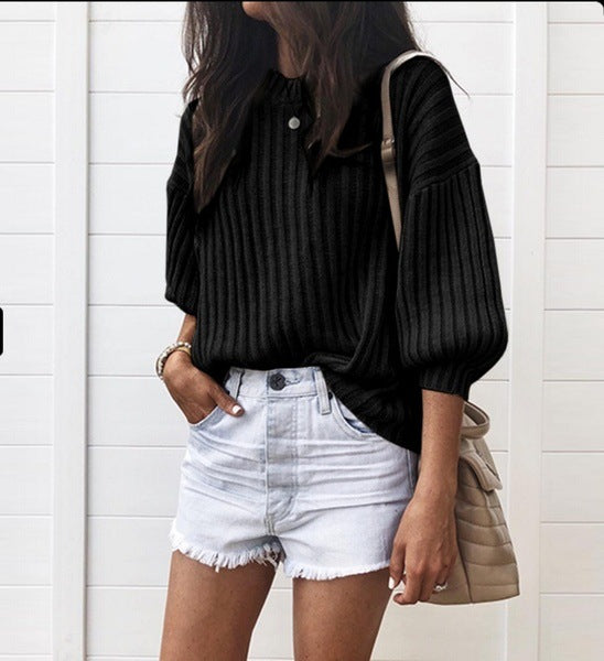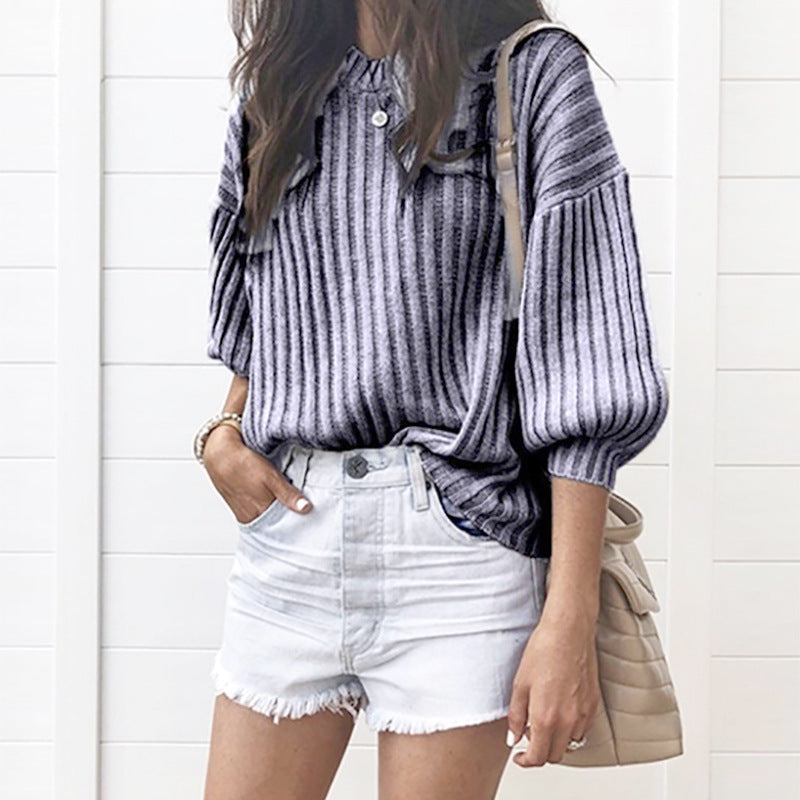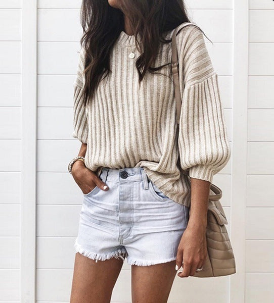 Damen modischer Strickpullover mit weiten Ärmeln und strukturiertem Design Heidi-Mode
