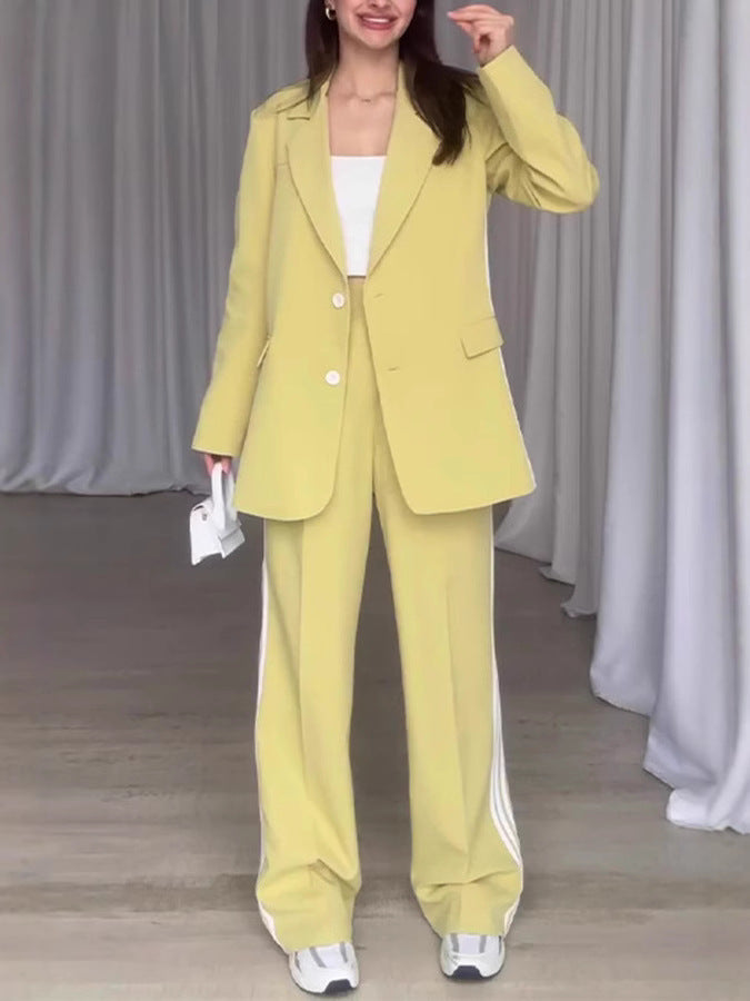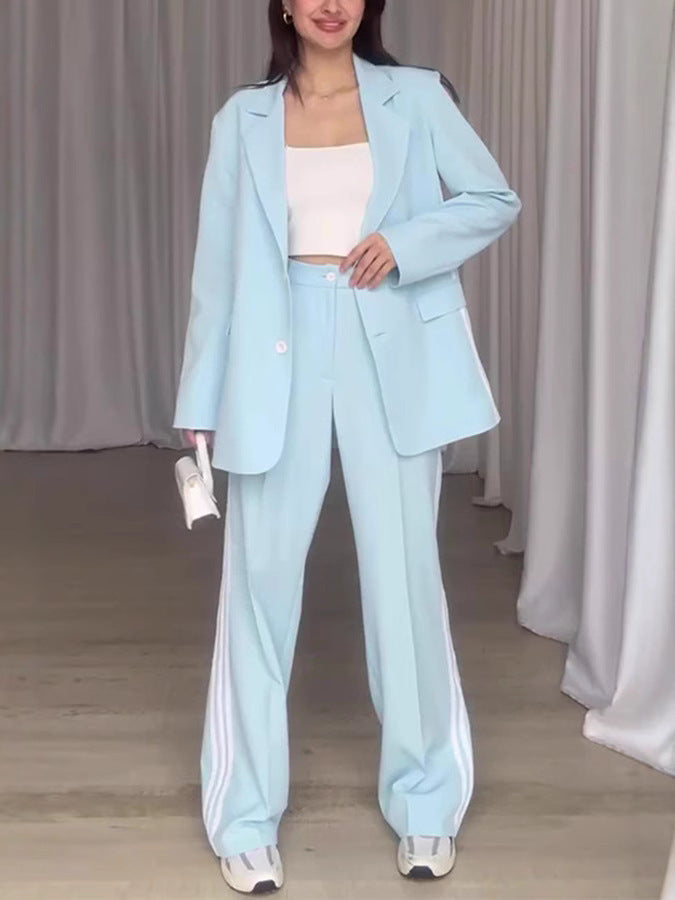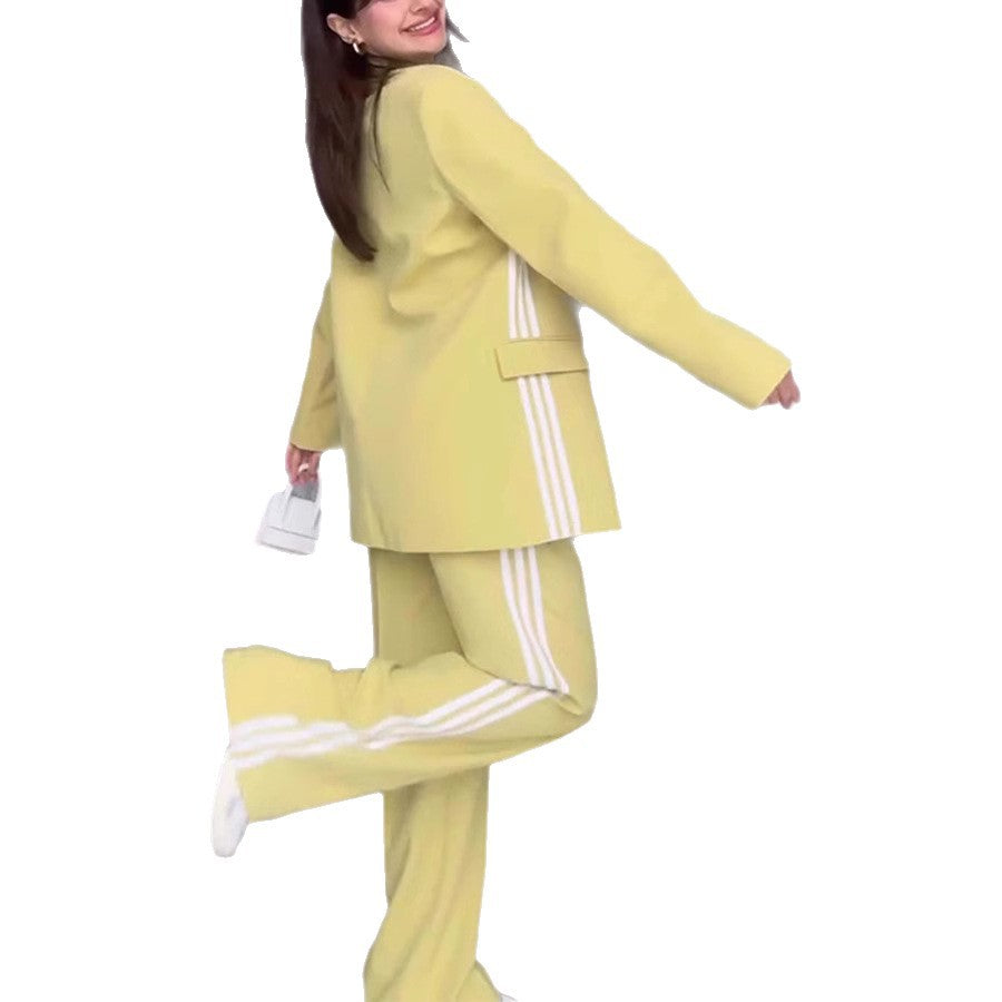 Damen Modisches Blazer-Hosen-Set mit kontrastierenden Streifen Heidi-Mode