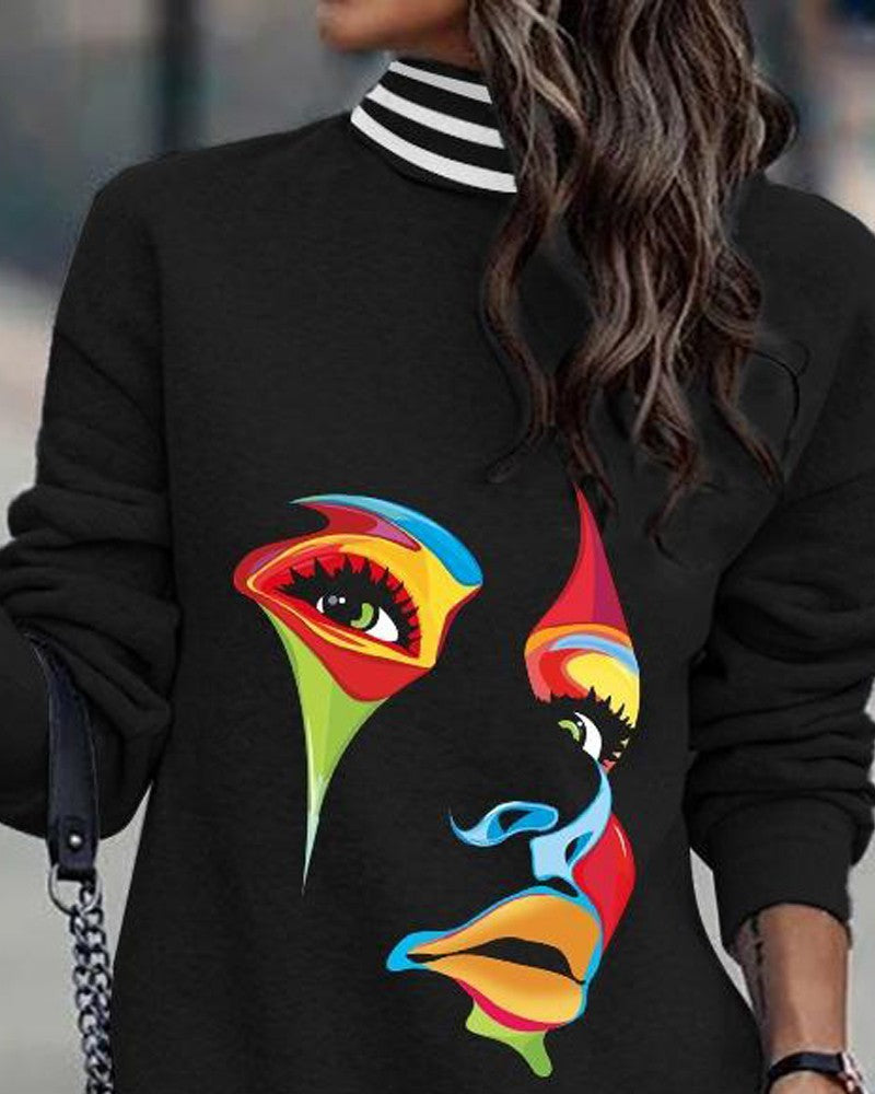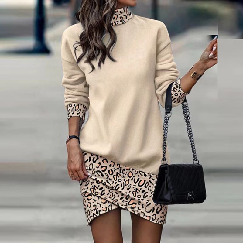 Damen modisches Sweatkleid mit hohem Kragen und grafischem Design Heidi-Mode