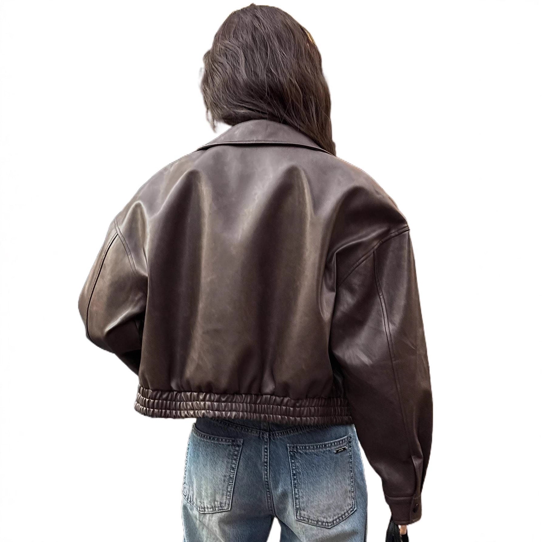 Damen Oversize Kunstlederjacke im modernen Look mit praktischem Reißverschluss und elastischem Bund Heidi-Mode