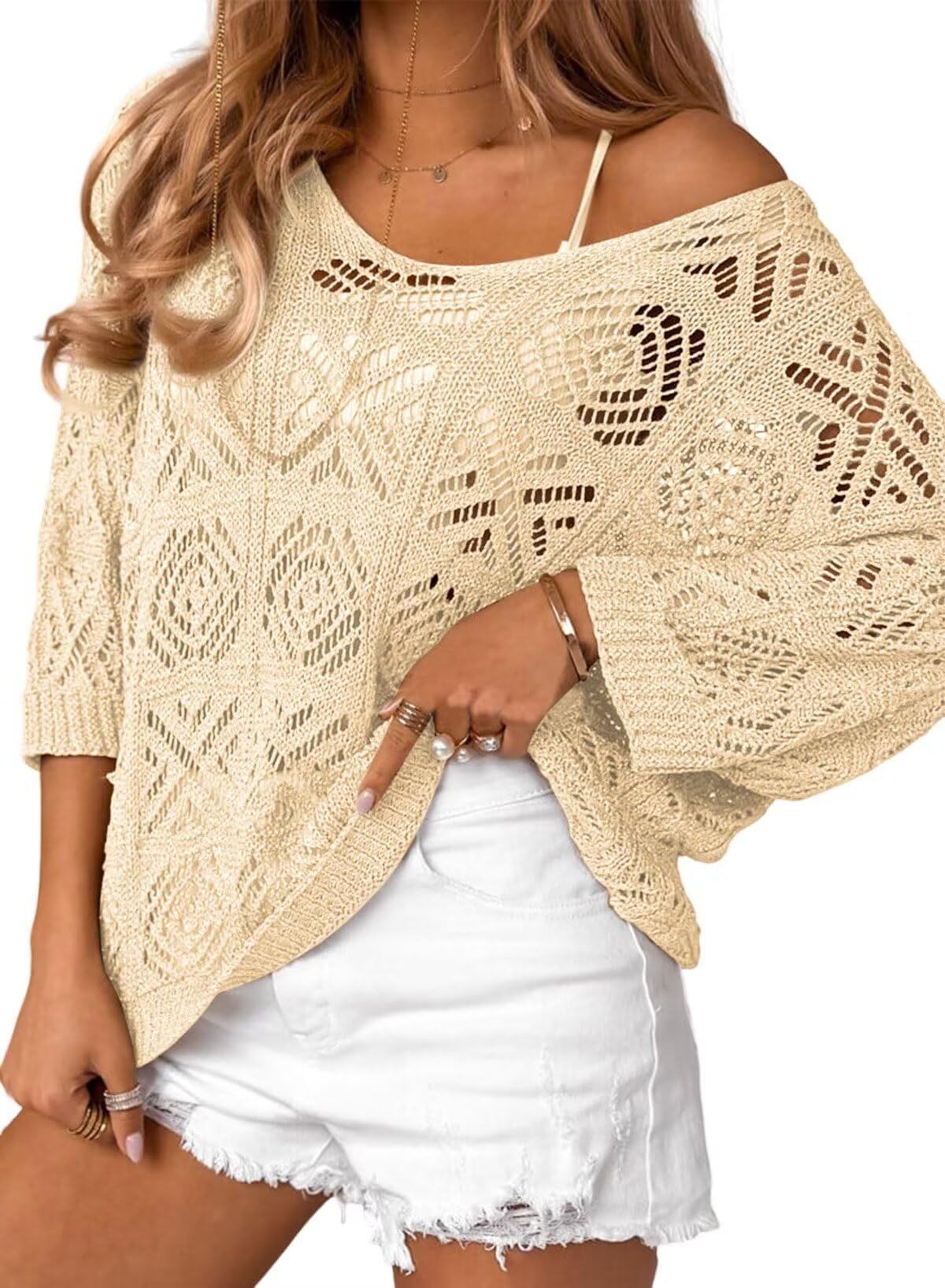 Damen Oversize Strickpullover mit Häkelstruktur Heidi-Mode