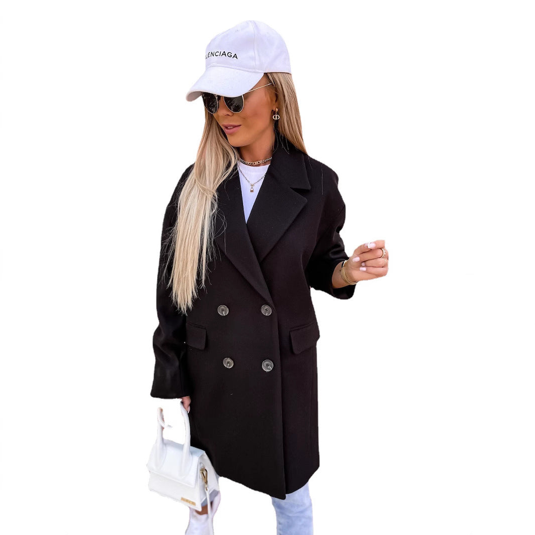 Damen Oversized Trenchcoat mit doppelter Knopfleiste und breitem Kragen Heidi-Mode