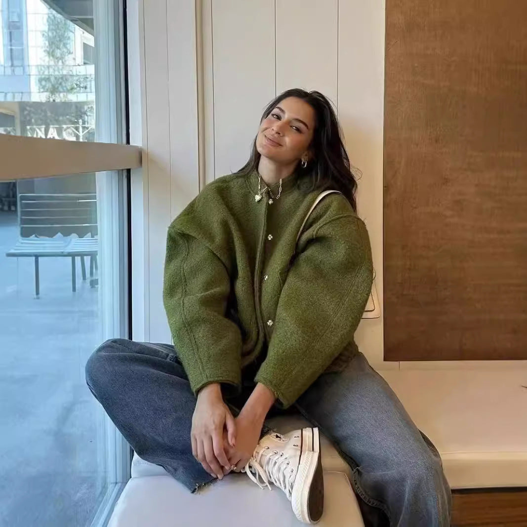 Damen Oversized Wolljacke im schlichten Design Heidi-Mode