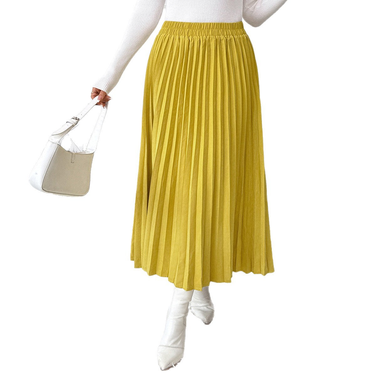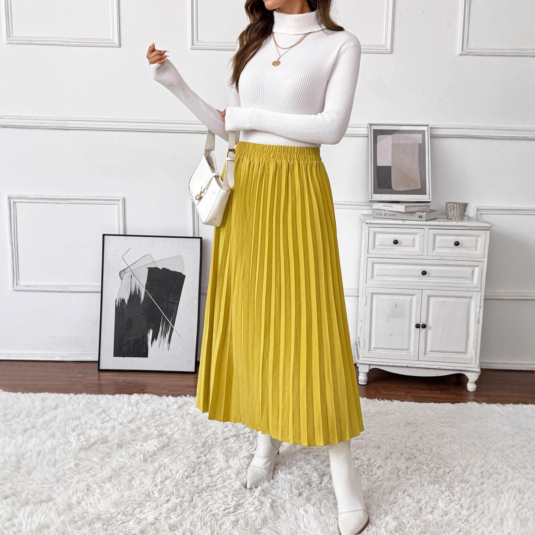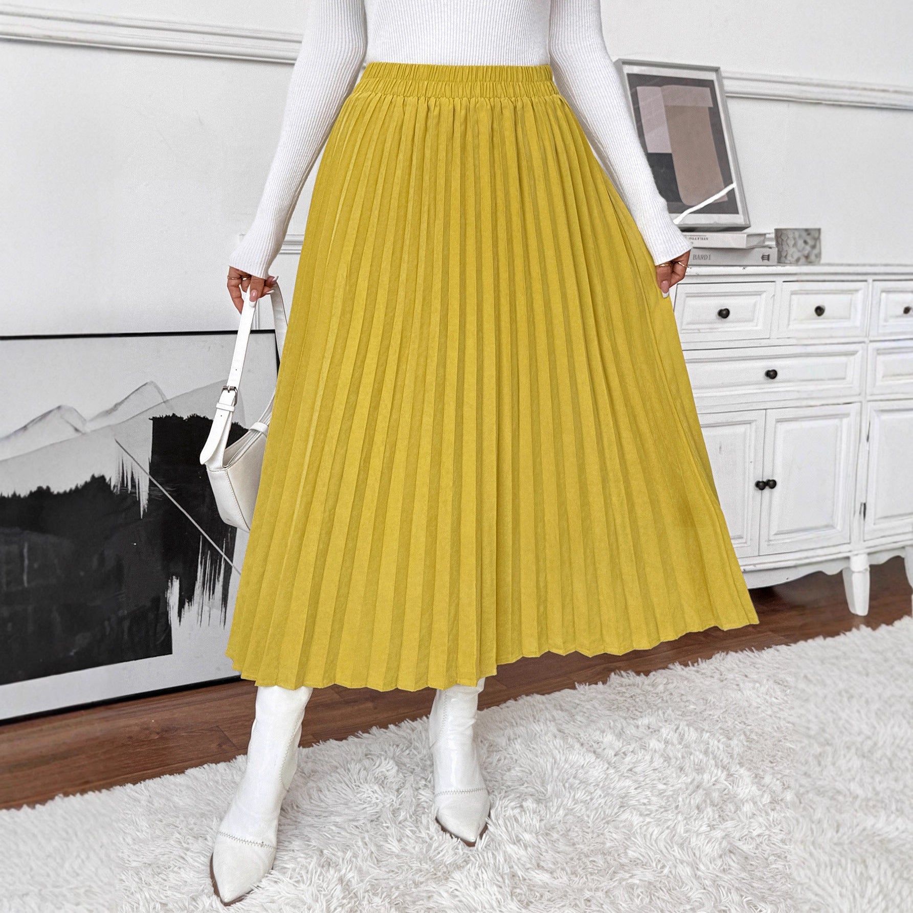 Damen Plissierter Midirock mit elastischem Bund und fließendem Schnitt Heidi-Mode