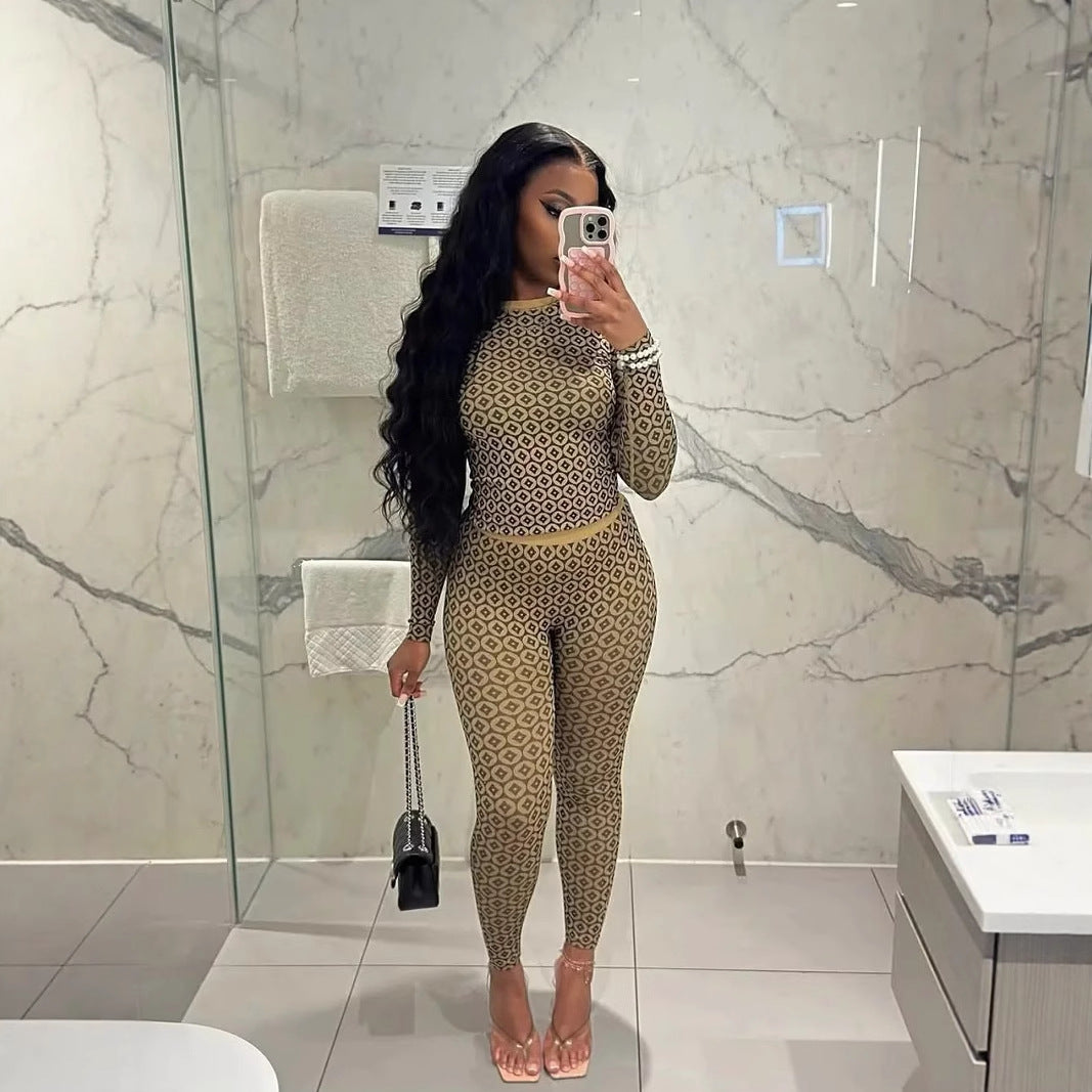 Damen Pyjama-Set aus weichem Jersey mit modernem Muster Heidi-Mode