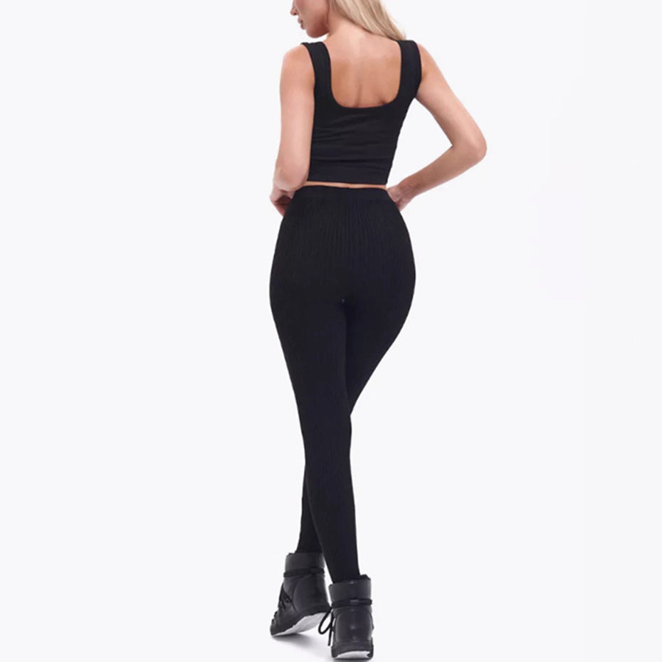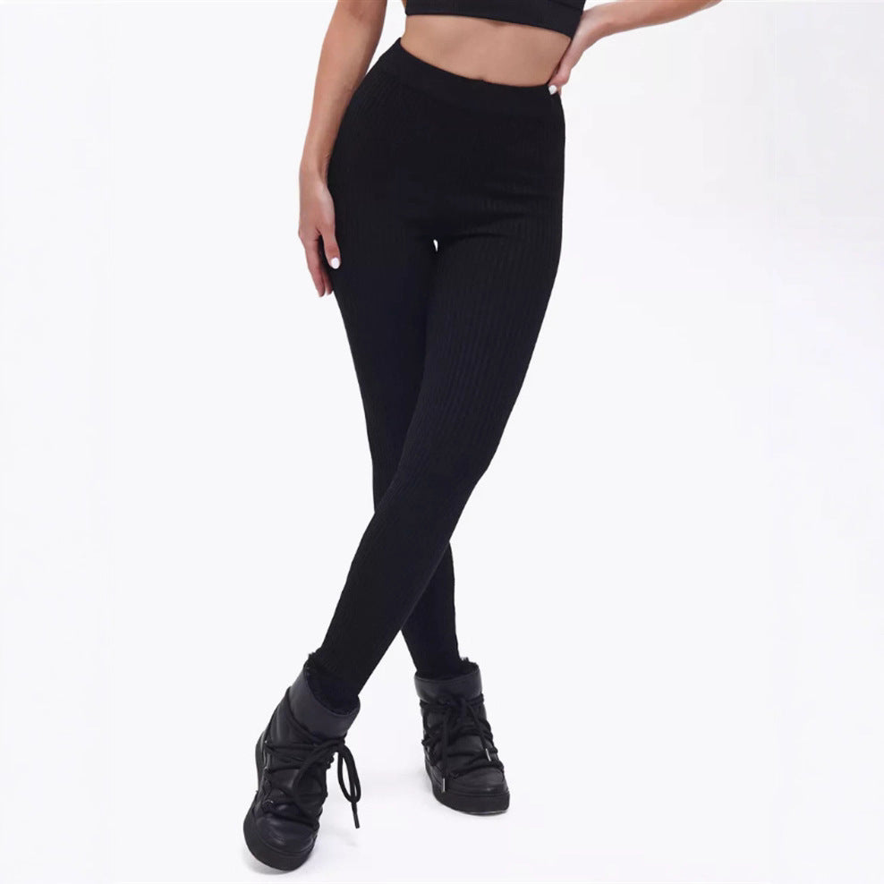 Damen Rippstrick-Leggings mit hohem Bund und feiner Struktur Heidi-Mode