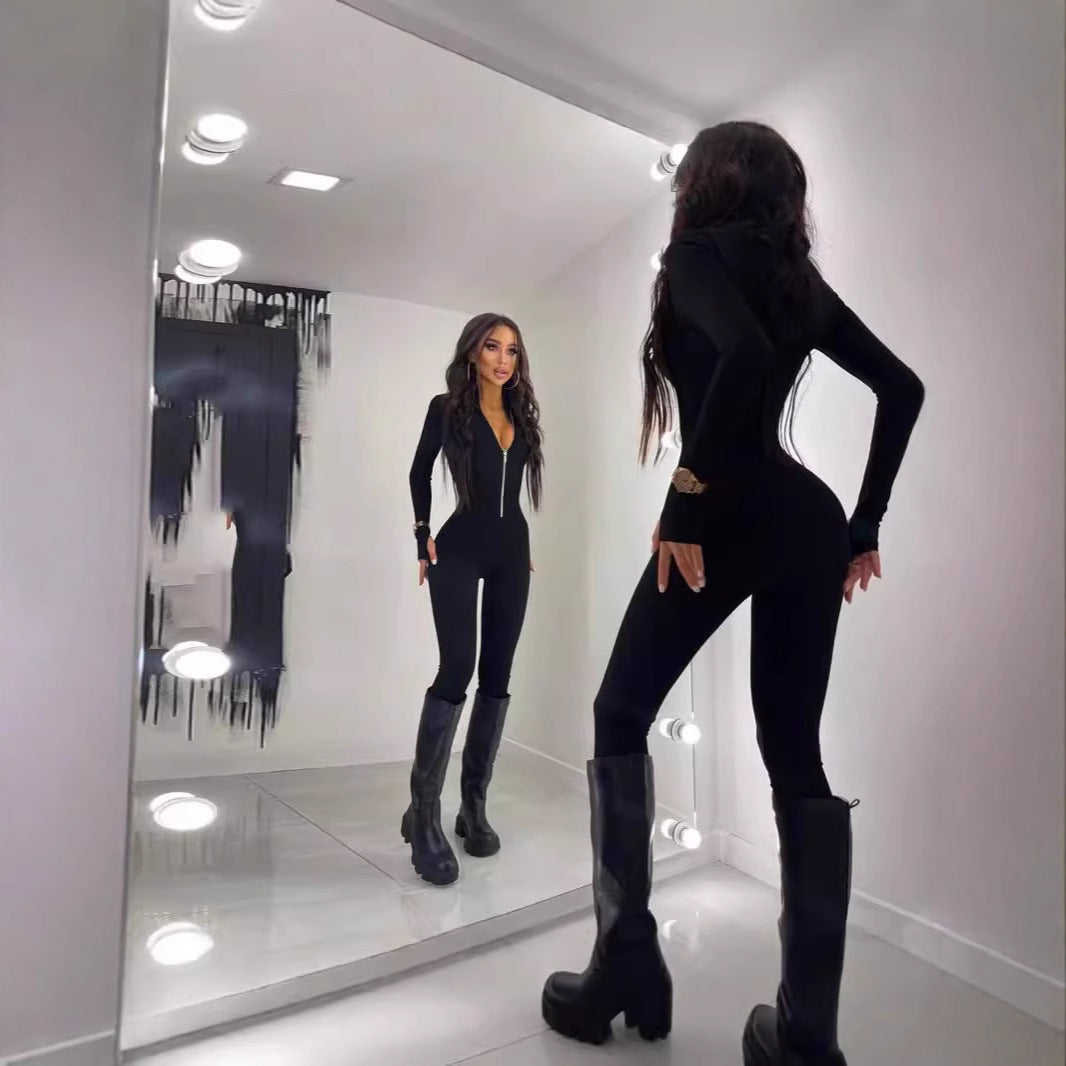 Damen Sportlicher Jumpsuit mit Reißverschluss und figurbetontem Schnitt Heidi-Mode
