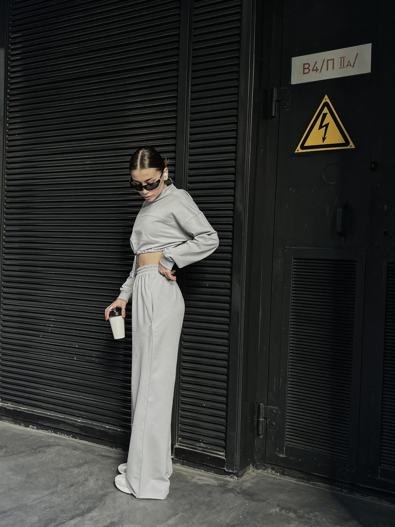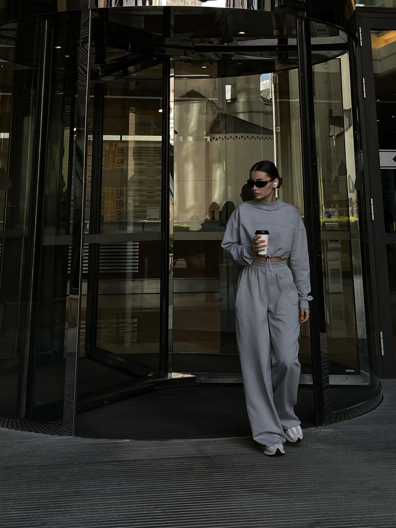 • Stylisches Crop-Design: Das cropped Oberteil ergänzt die weit geschnittenen Hosen und sorgt für einen modernen Look.