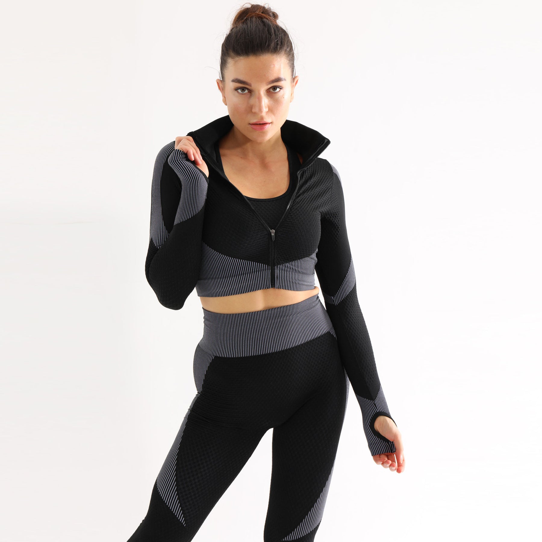 Damen Sportliches Set mit cropped Jacke und hochgeschnittenen Leggings Heidi-Mode