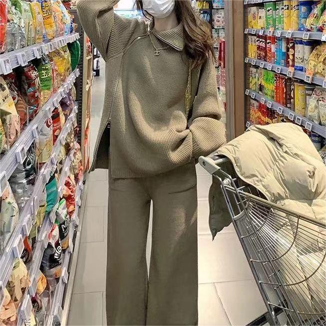 Damen Strickensemble mit Rollkragen und Reißverschluss Heidi-Mode