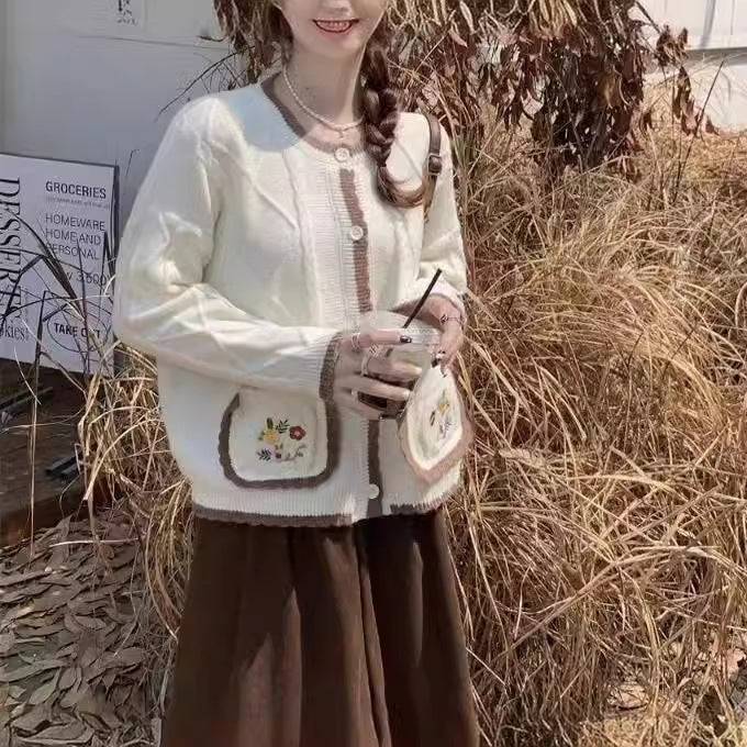 • Einzigartiges Design: Die Strickjacke verfügt über eine raffinierte Strickstruktur und charmante Blumenstickereien auf den Taschen, die für einen besonderen Akzent sorgen.